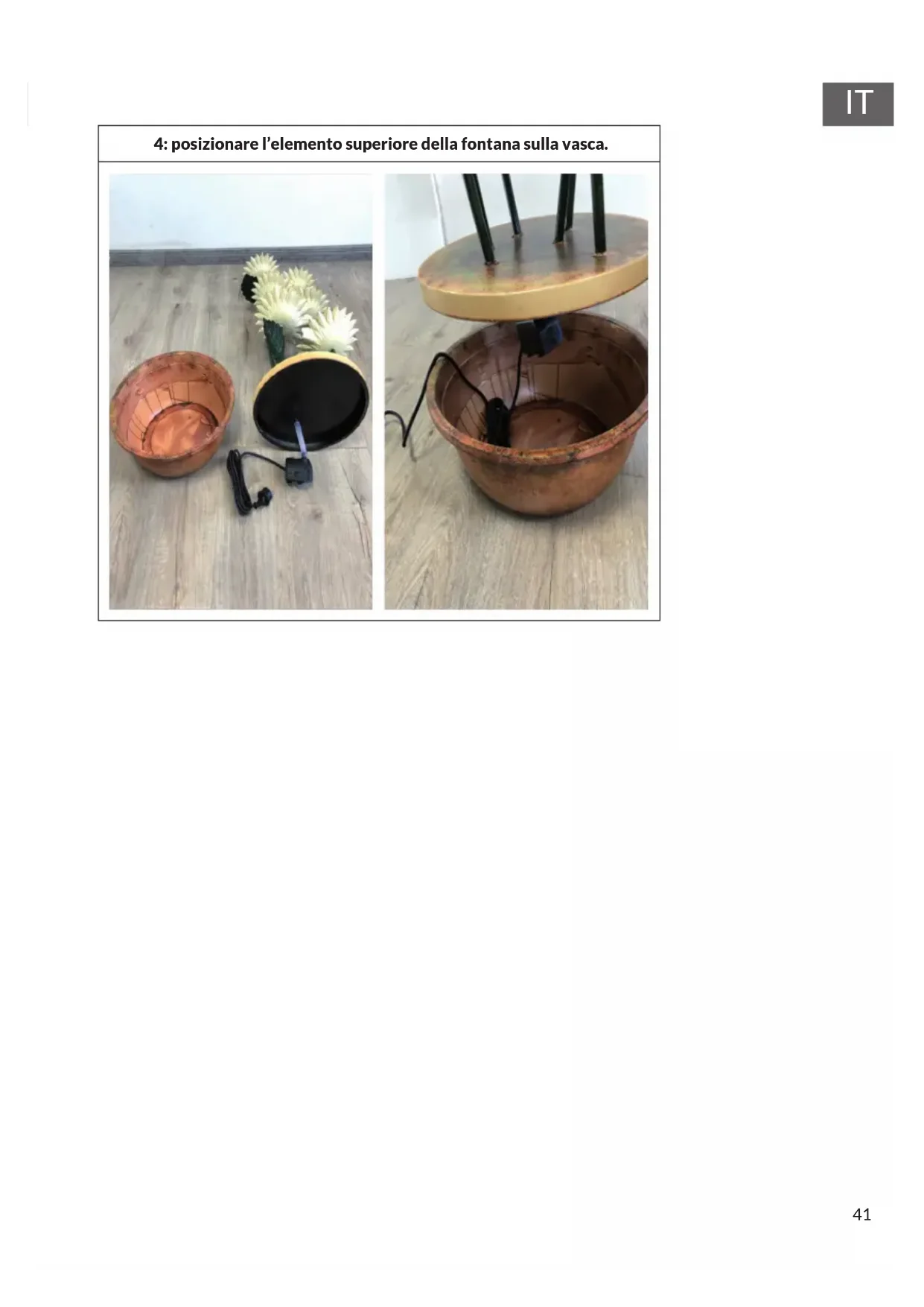4: posizionare l’elemento superiore della fontana sulla vasca.42