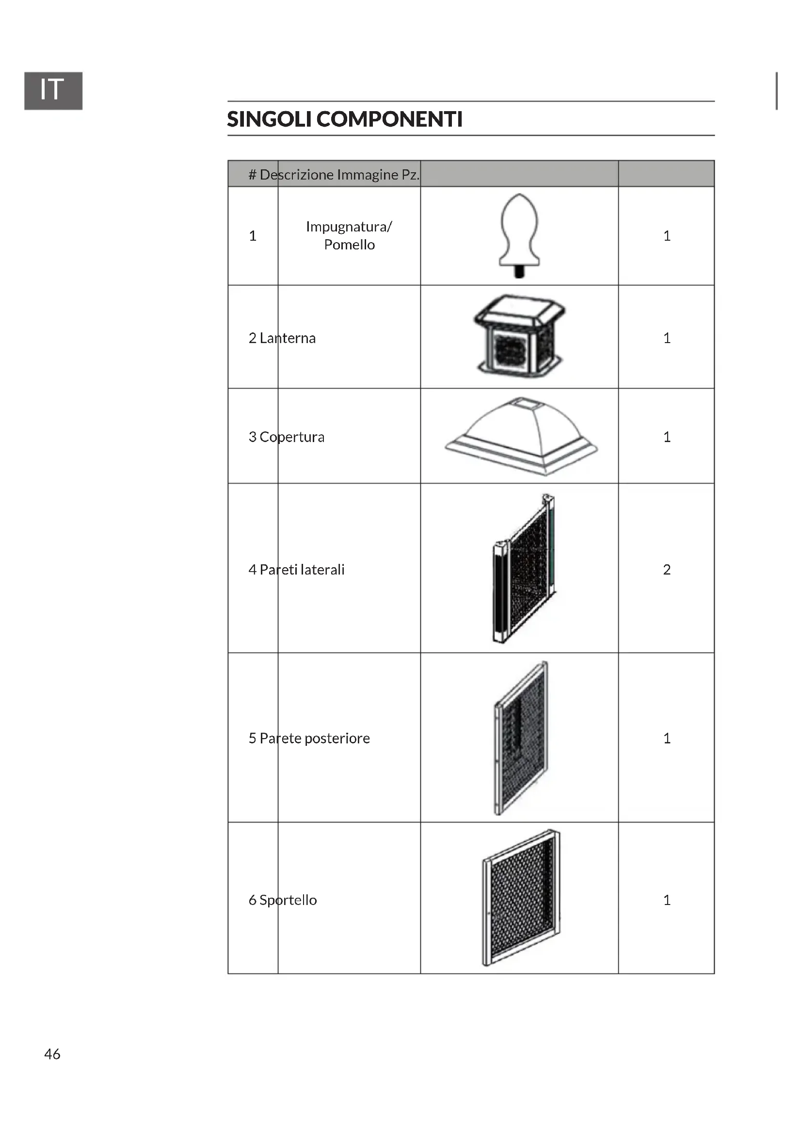 SINGOLI COMPONENTI # Descrizione Immagine Pz.