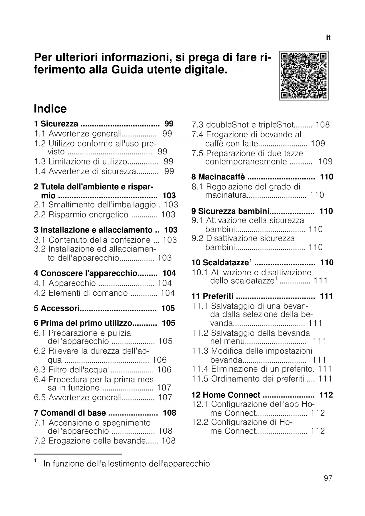 Per ulteriori informazioni, si prega di fare ri- ferimento alla Guida utente digitale. Indice 1 Sicurezza ...................................99