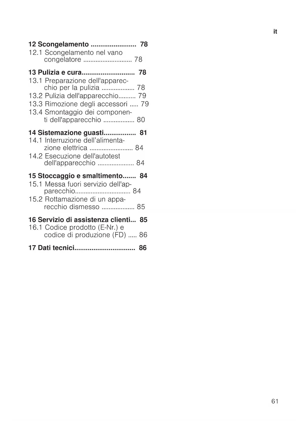 congelatore ............................78 13 Pulizia e cura............................78