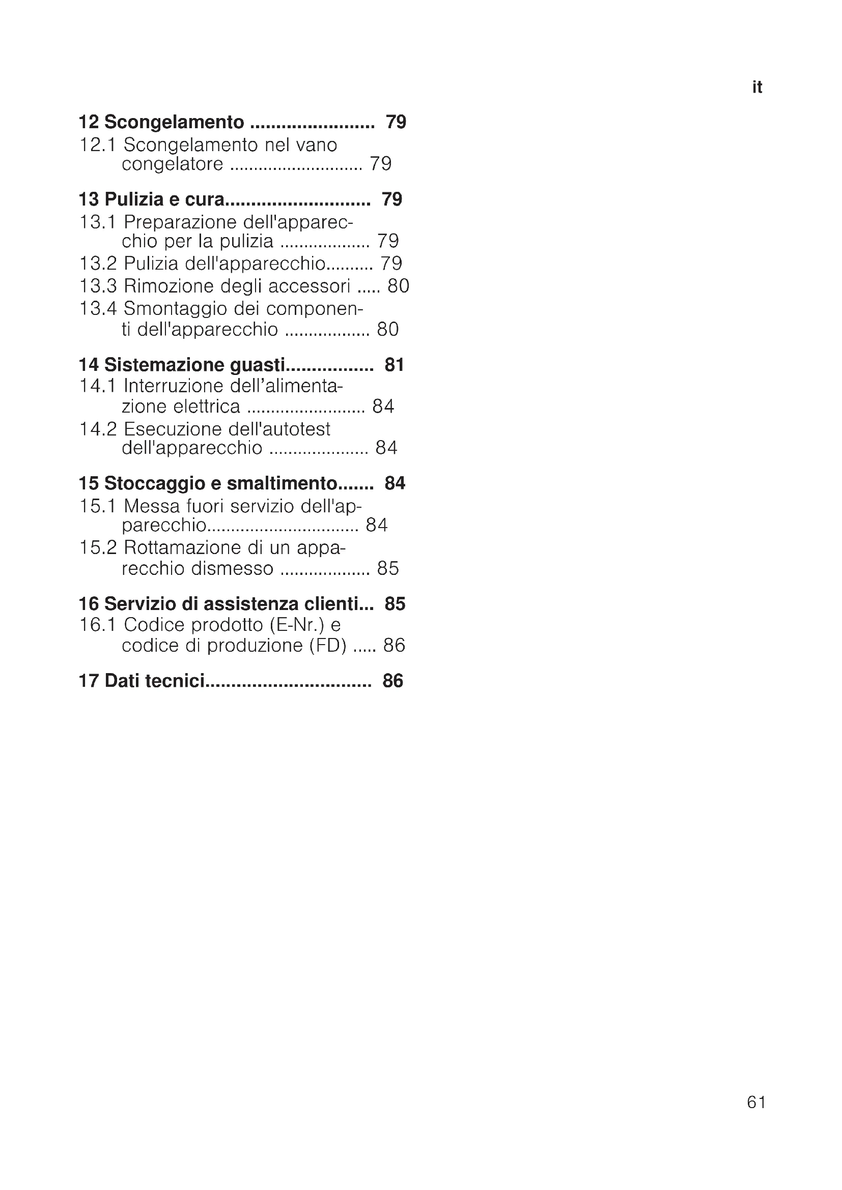 codice di produzione (FD) .....86 17 Dati tecnici................................86it Sicurezza