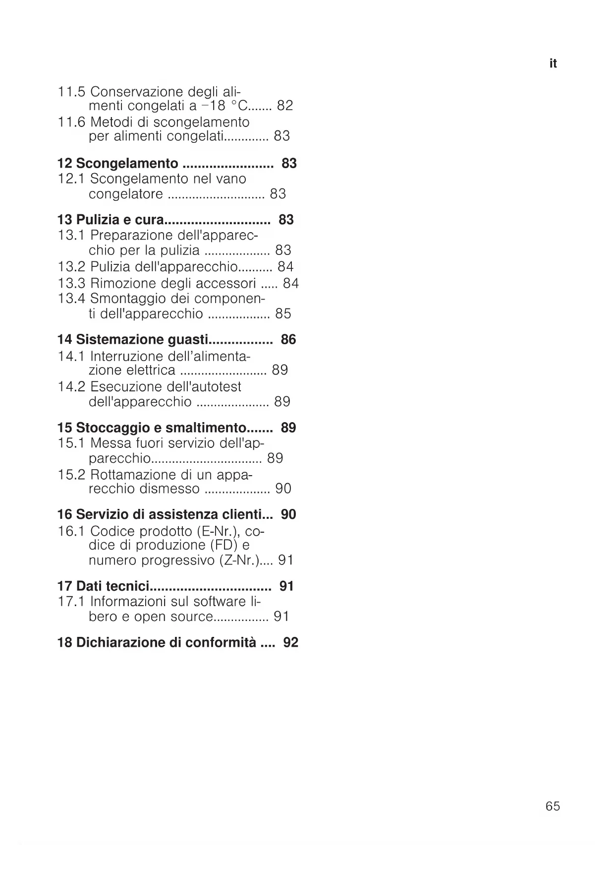congelatore ............................83 13 Pulizia e cura............................83