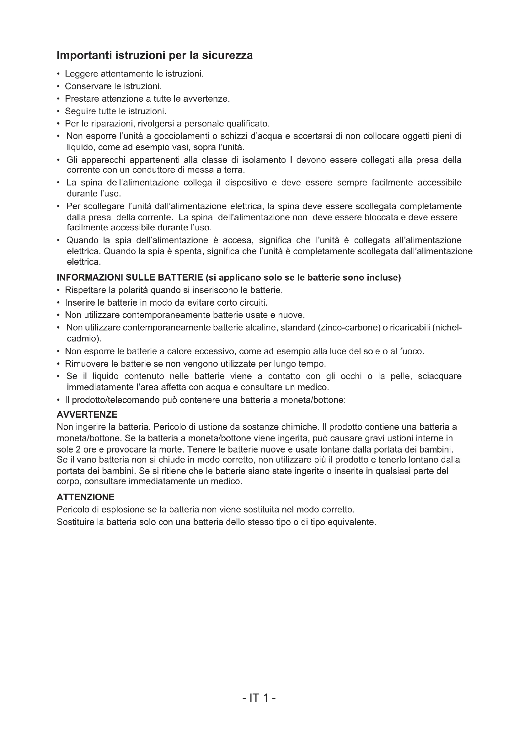 PER CONSULTAZIONI FUTURE. IT- IT 1 - Importanti istruzioni per la sicurezza