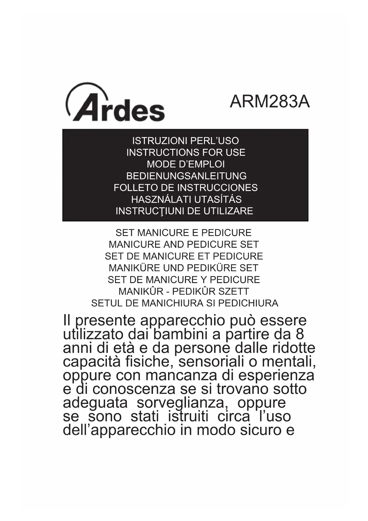 ARM283A - Set manicure e pedicure ARDES - Manuale utente e istruzioni gratuiti