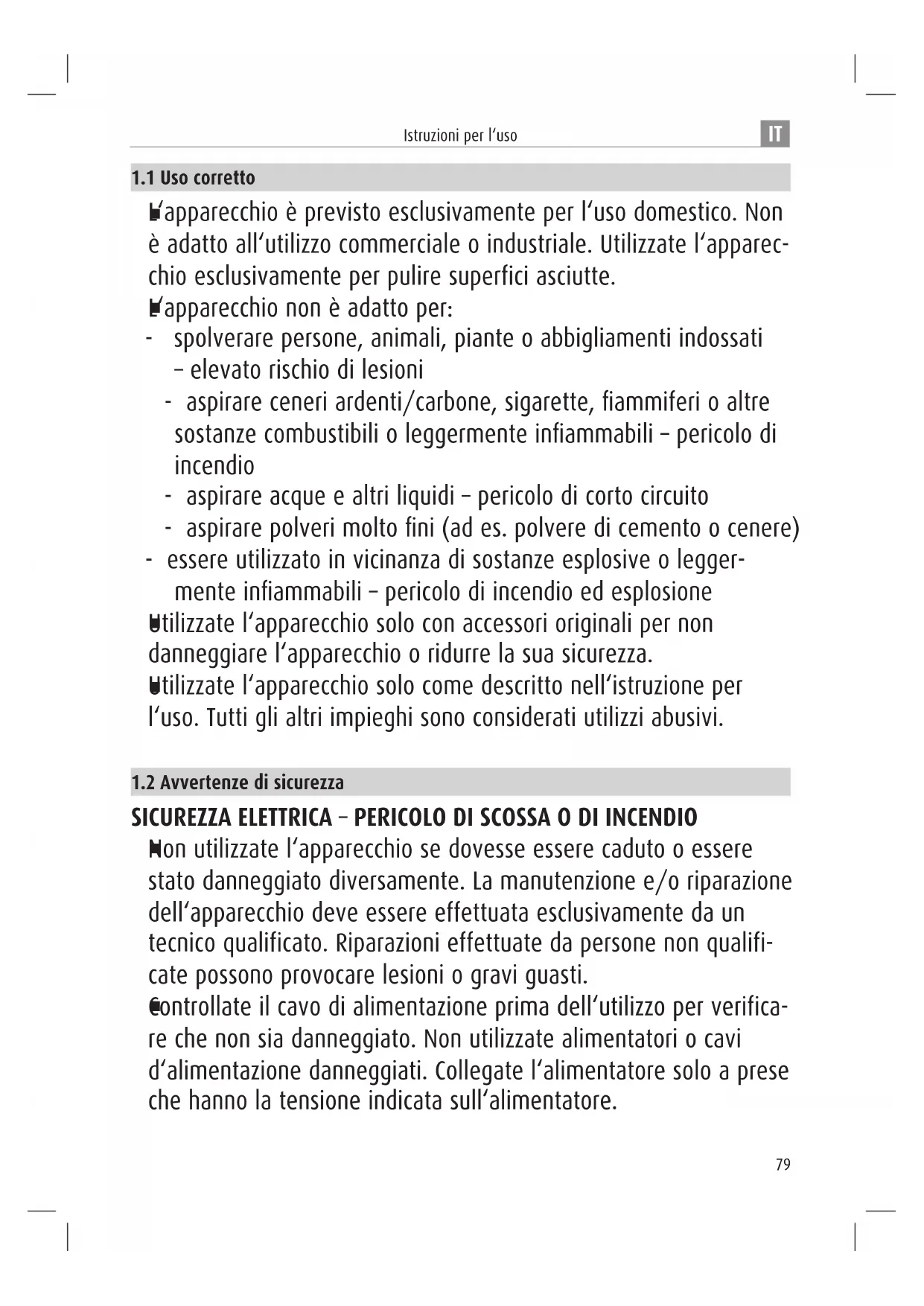 Utilizzate l‘apparecchio solo come descritto nell‘istruzione per l‘uso. Tutti gli altri impieghi sono considerati utilizzi abusivi.