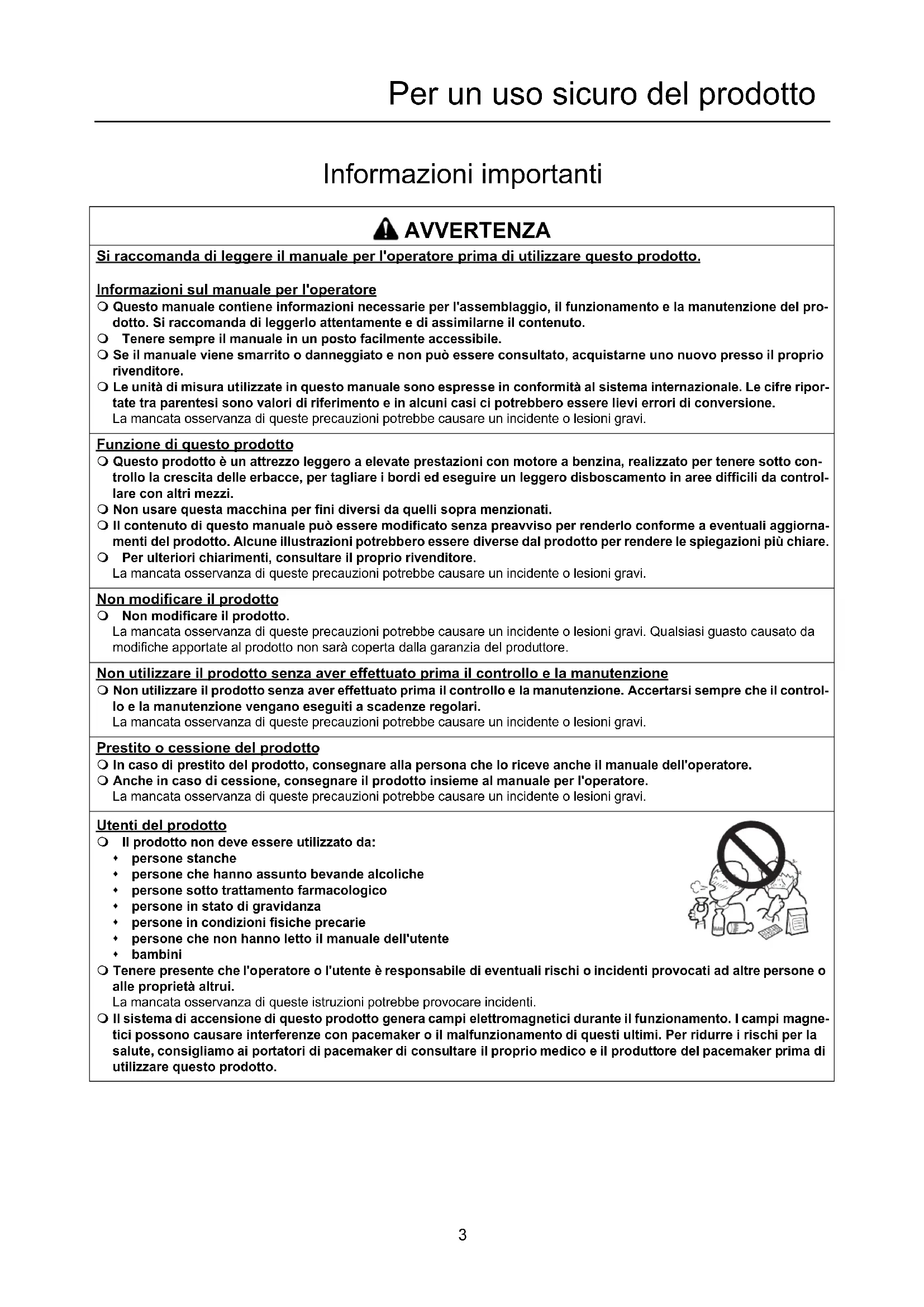 - Contenuto Per un uso sicuro del prodotto p. 3
