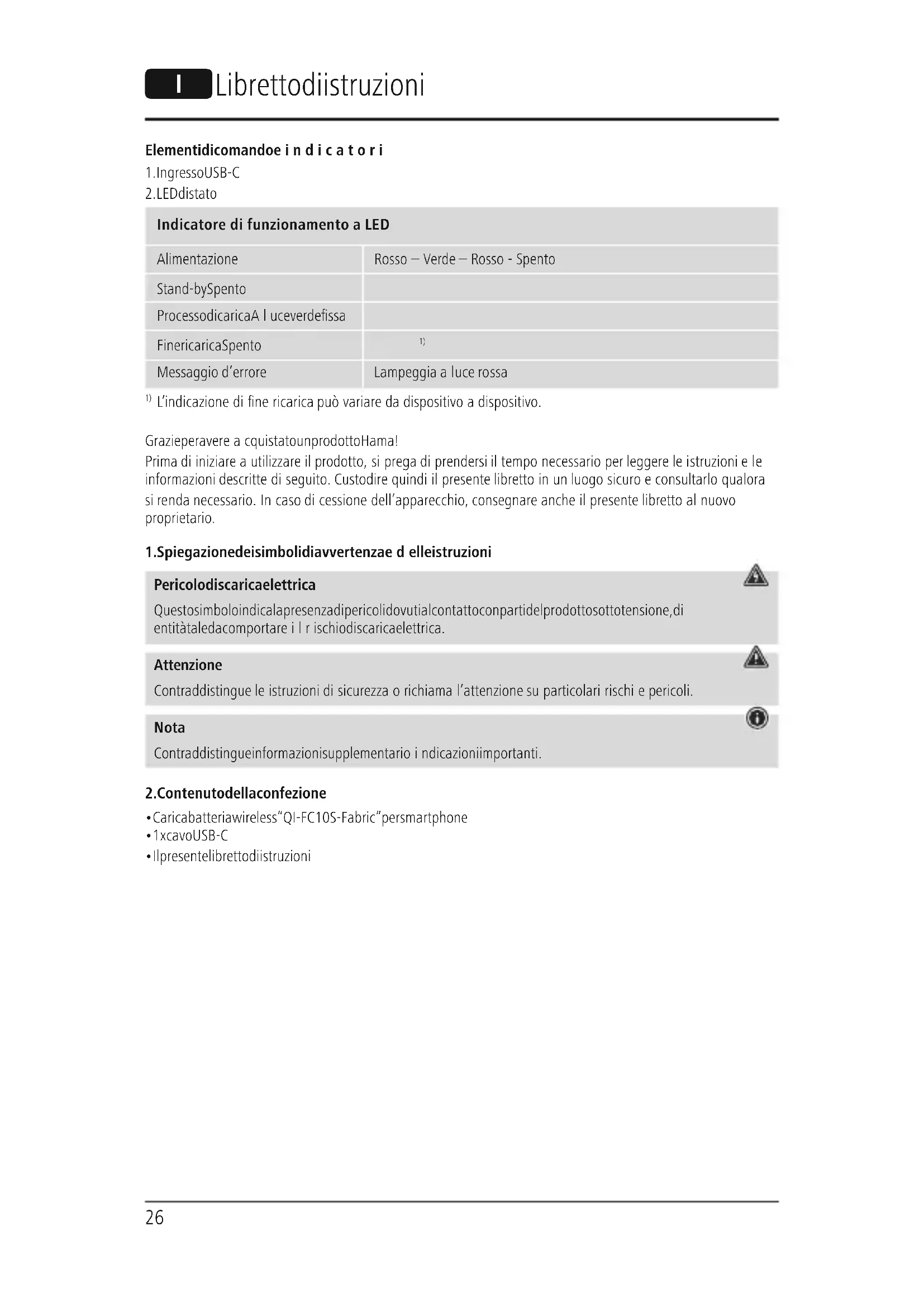 L’indicazione di ne ricarica può variaredadispositivo adispositivo. Grazie per avereacquistato un prodotto Hama! Prima di iniziareautilizzareilprodotto, si prega di prendersi il tempo necessario per leggereleistruzioni ele informazioni descritte di seguito. Custodirequindi il presente libretto in un luogo sicuroeconsultarlo qualora si renda necessario. In caso di cessione dell’apparecchio, consegnareanche il presente libretto al nuovo proprietario.