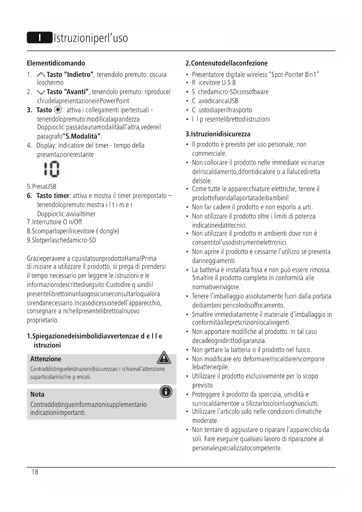 Grazie per avereacquistato un prodotto Hama! Prima di iniziareautilizzareilprodotto, si prega di prendersi il tempo necessario per leggereleistruzioni ele informazioni descritte di seguito. Custodirequindi il presente libretto in un luogo sicuroeconsultarlo qualora si renda necessario. In caso di cessione dell’apparecchio, consegnareanche il presente libretto al nuovo proprietario.