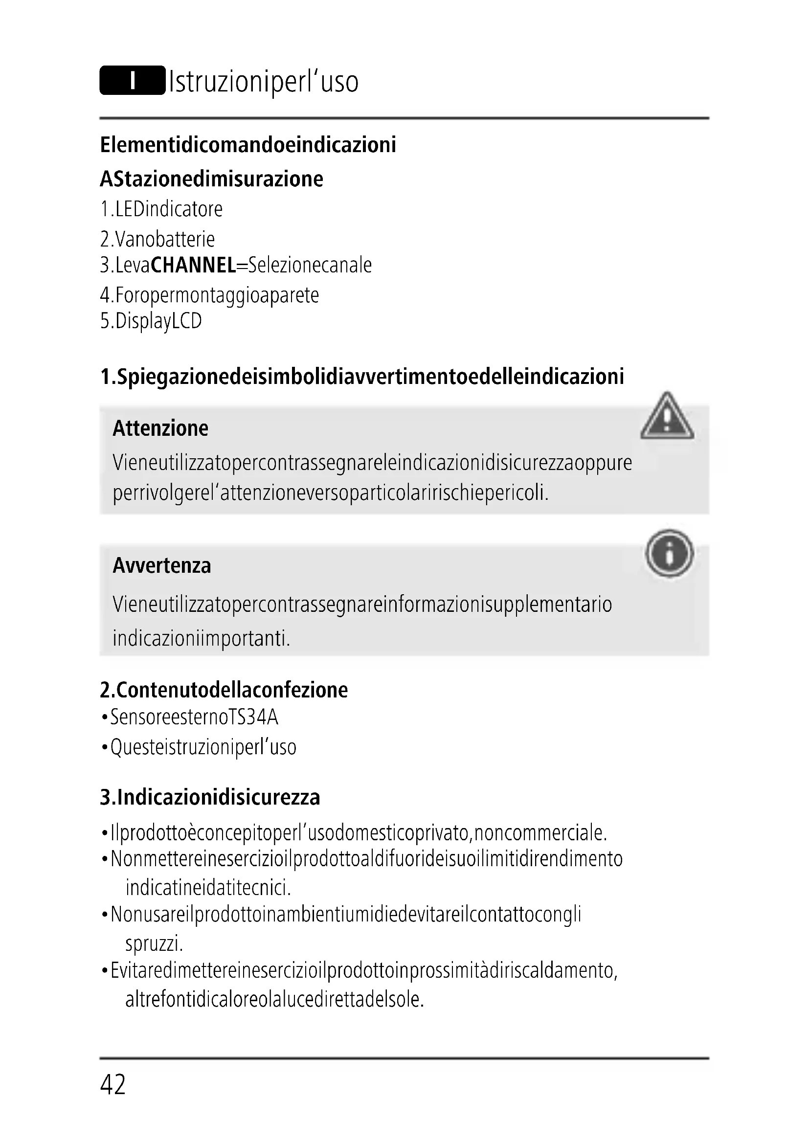 - Accertarsi che dopo ogni sostituzione delle batterie sulla stazione di misurazione o sulla stazione base avvenga una nuova sincronizzazione delle stazioni.48 Avvertenza – sostituzione delle batterie