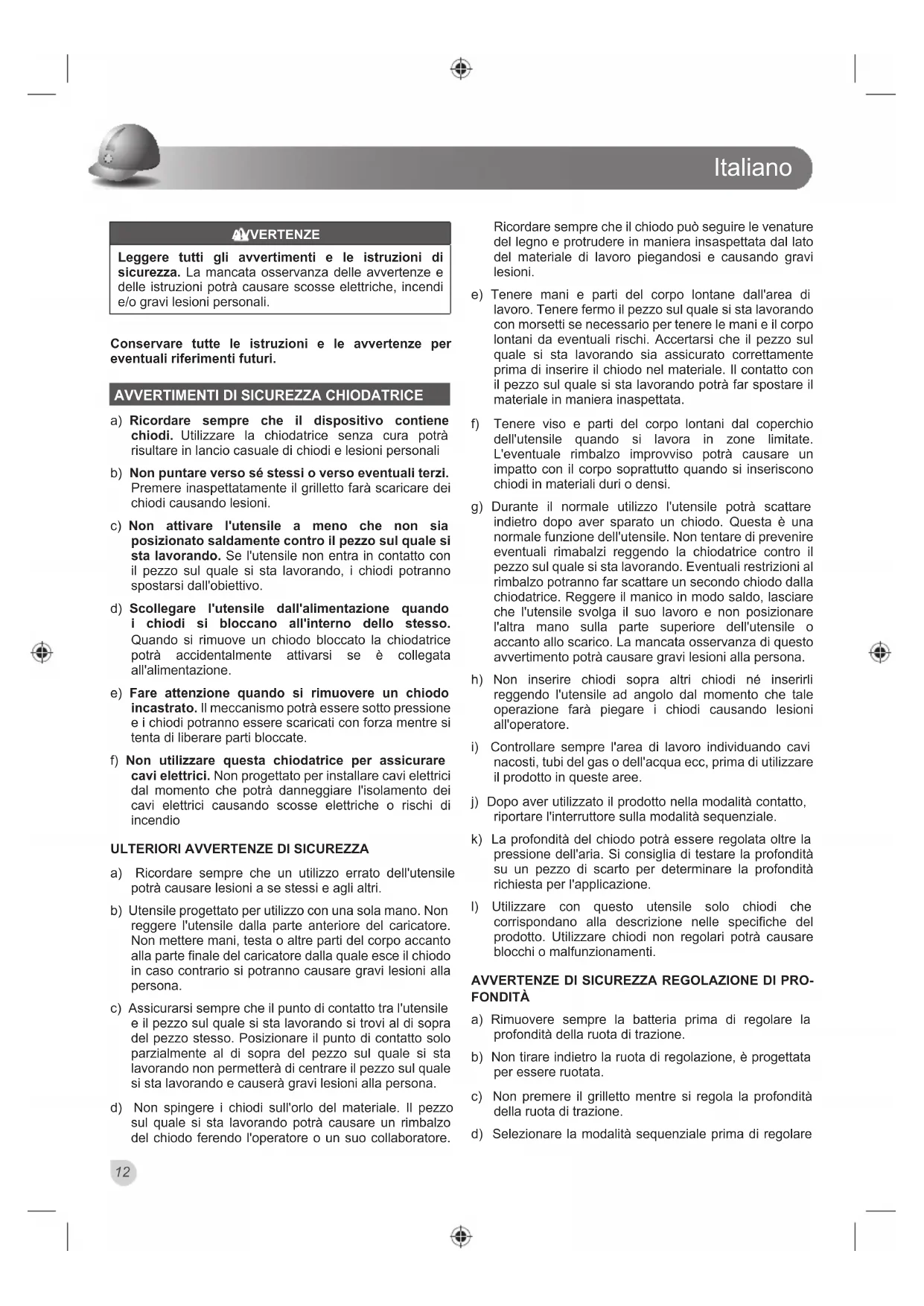 AVVERTIMENTI DI SICUREZZA CHIODATRICE