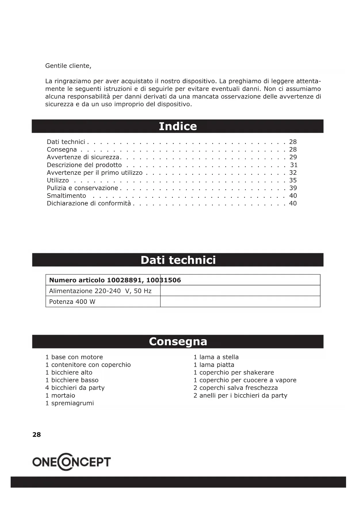Trova gratuitamente il manuale del dispositivo Smoothy 2G OneConcept in formato PDF.
