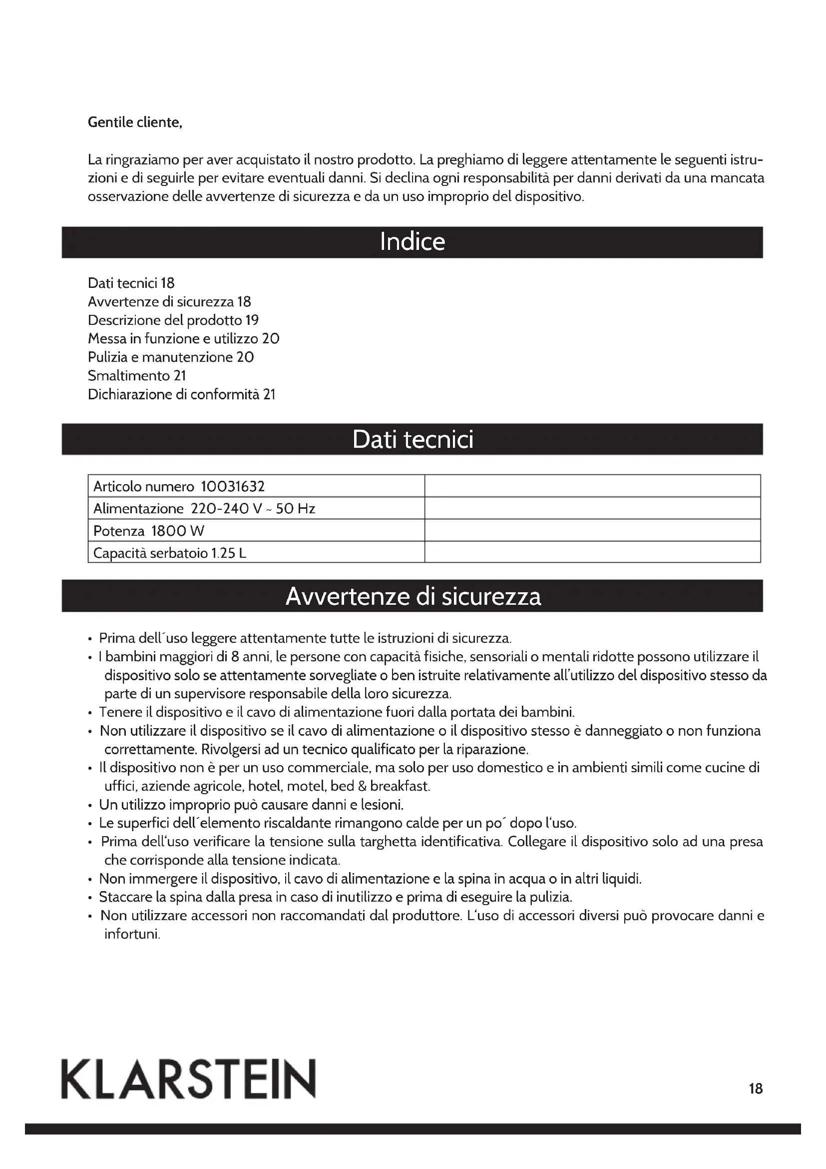 Scarica le istruzioni per il tuo Macchina da caffè in formato PDF gratuitamente! Trova il tuo manuale Soulmate - Klarstein e riprendi in mano il tuo dispositivo elettronico. In questa pagina sono pubblicati tutti i documenti necessari per l'utilizzo del tuo dispositivo. Soulmate del marchio Klarstein.