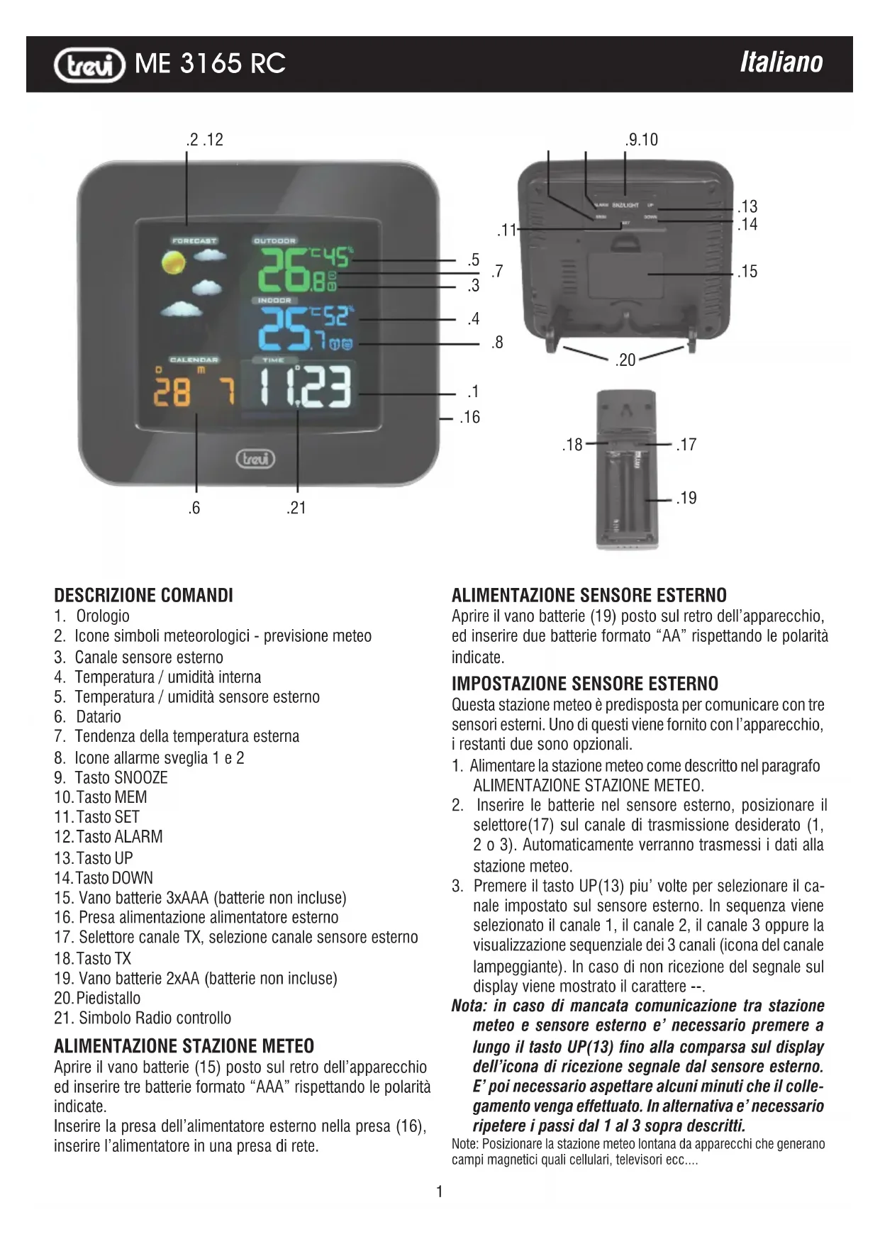 ME 3165 RC - Stazione Meteo Trevi - Manuale utente e istruzioni gratuiti
