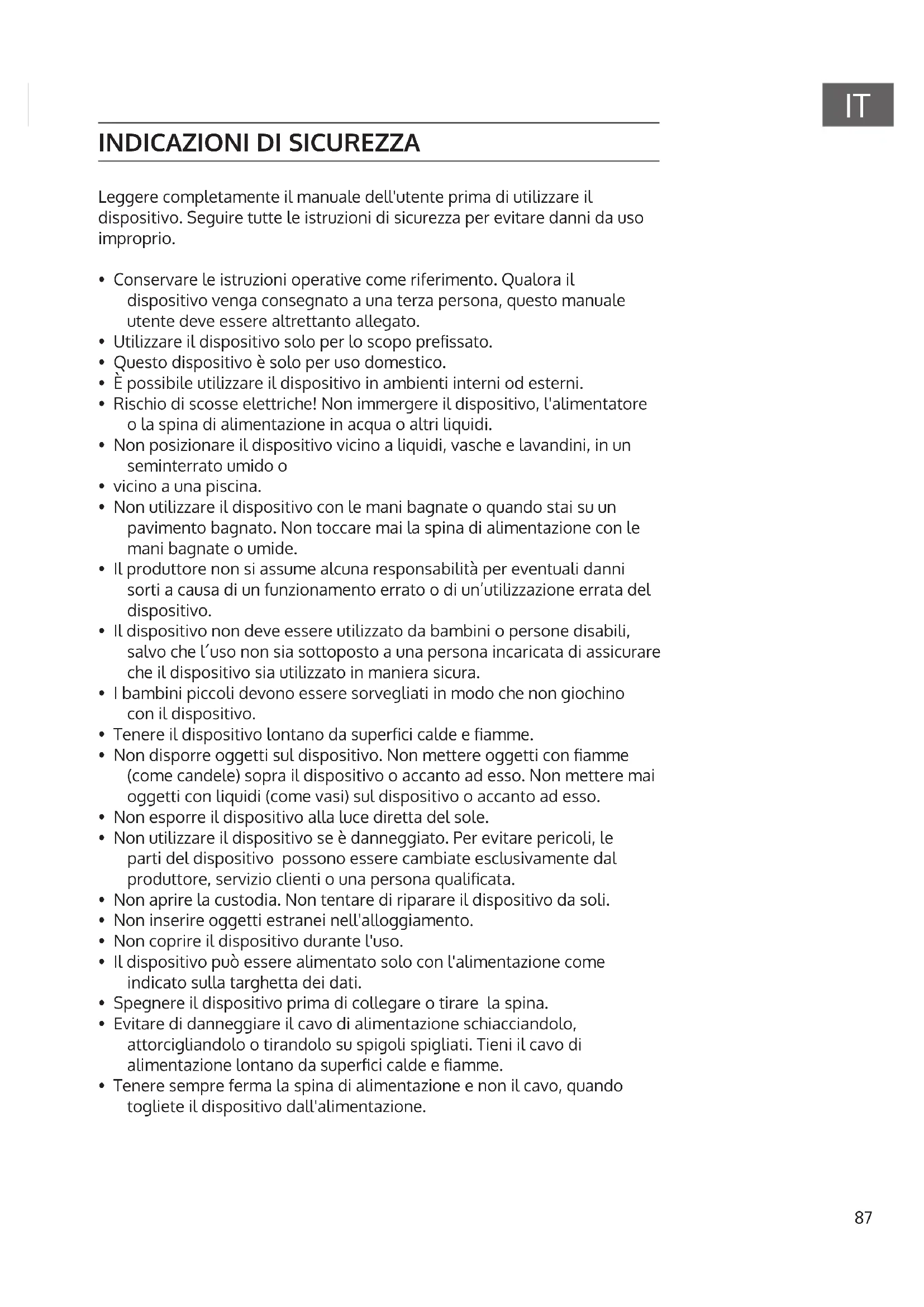 - Il dispositivo non deve essere utilizzato da bambini o persone disabili, salvo che l´uso non sia sottoposto a una persona incaricata di assicurare che il dispositivo sia utilizzato in maniera sicura.