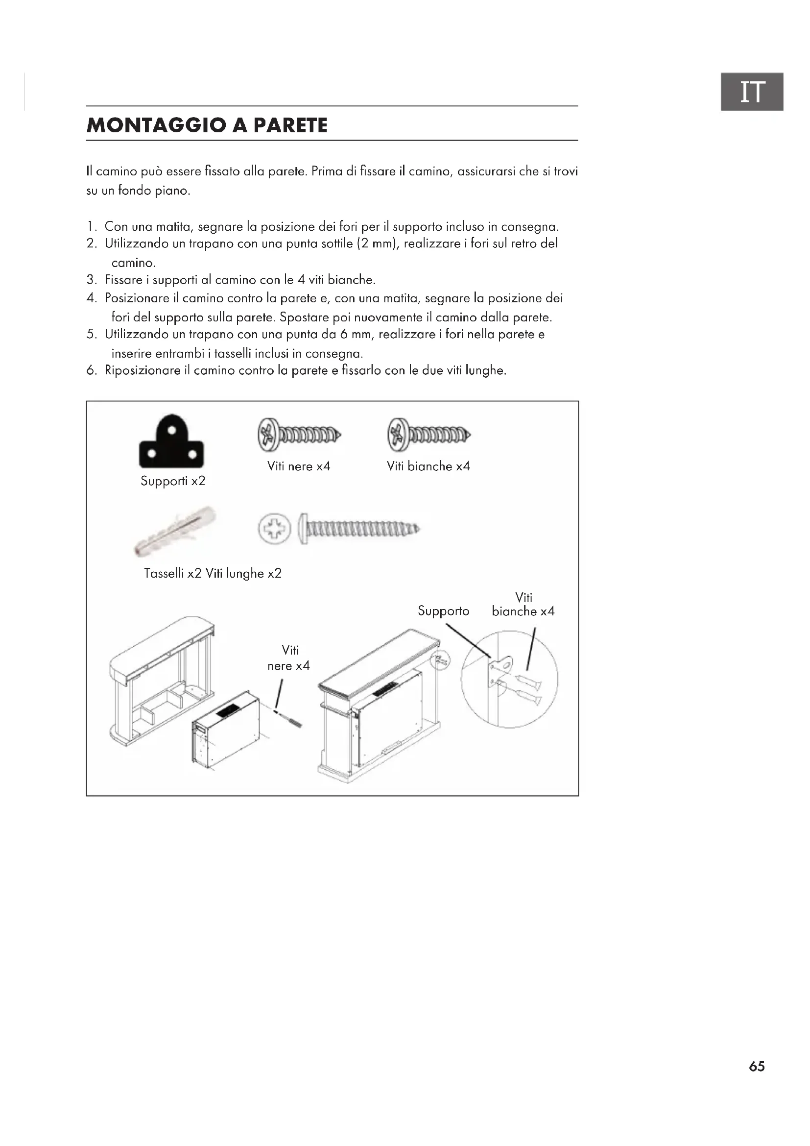 Il camino può essere ssato alla parete. Prima di ssare il camino, assicurarsi che si trovi su un fondo piano.