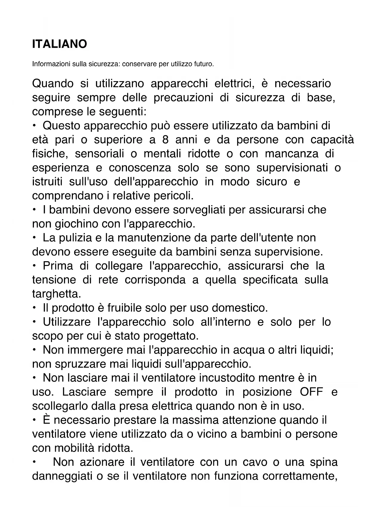 - È necessario prestare la massima attenzione quando il ventilatore viene utilizzato da o vicino a bambini o persone con mobilità ridotta.