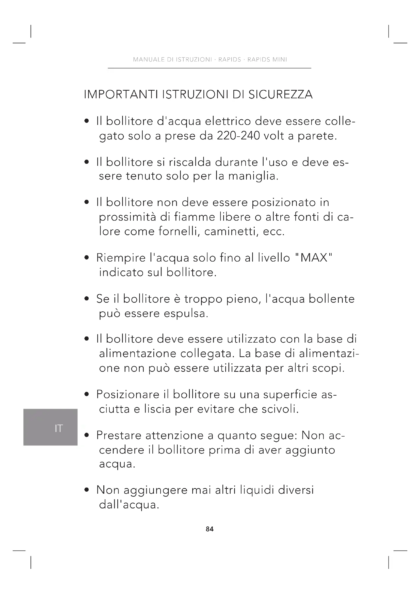 - Non aggiungere mai altri liquidi diversi dall'acqua.85