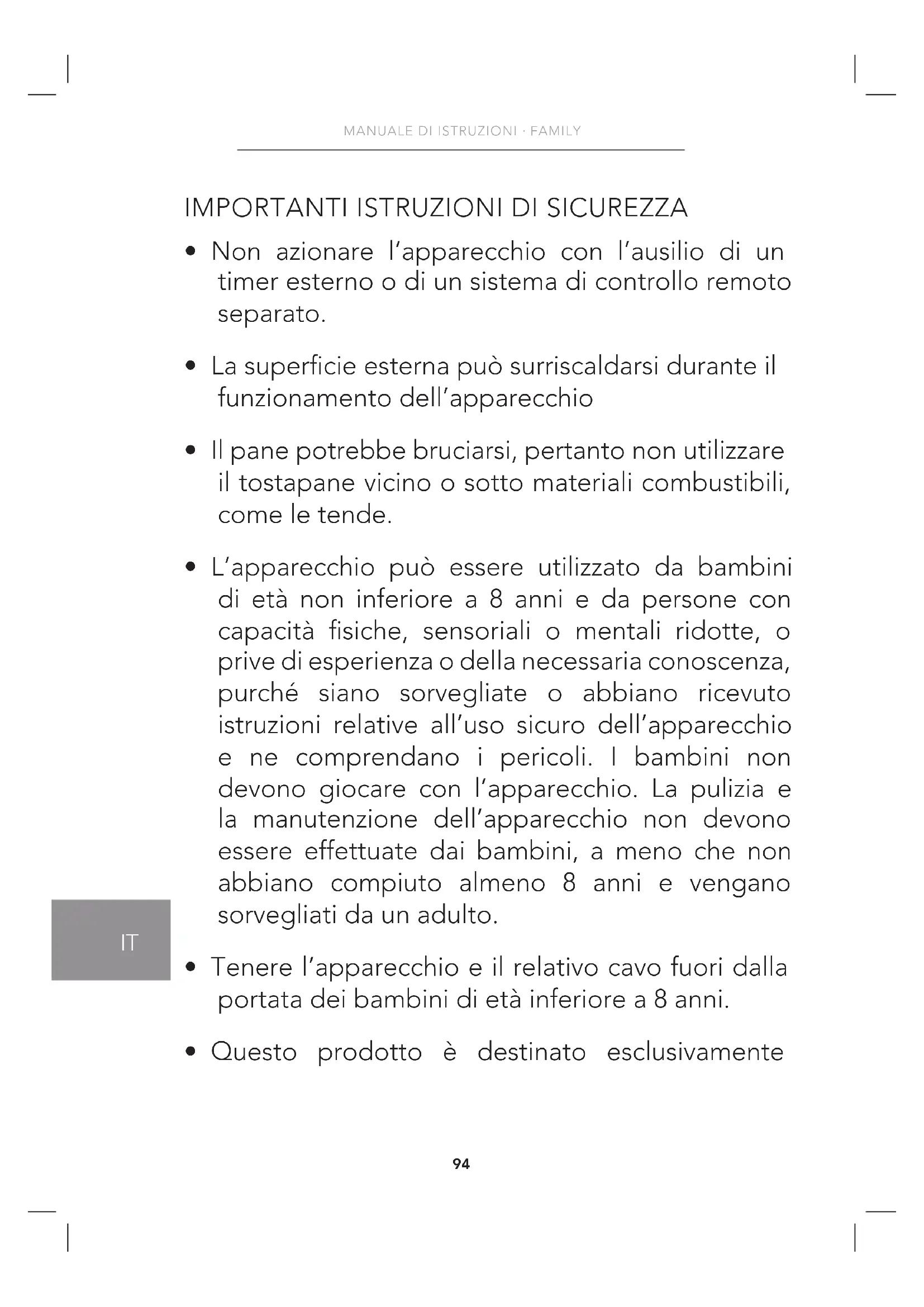 - Non lasciare il tostapane incustodito mentre è in funzione.