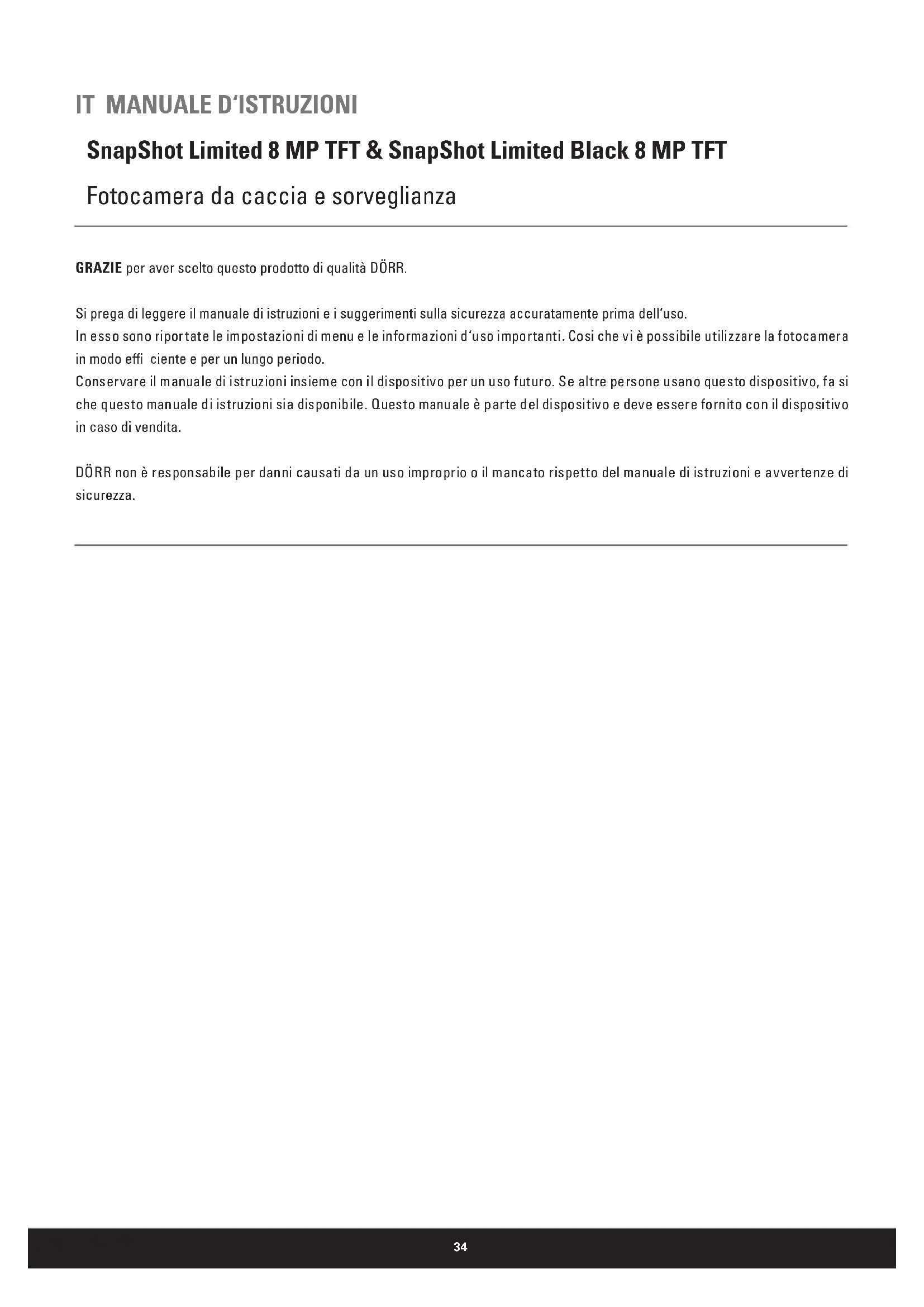 MANUALE UTENTE SnapShot Black 8MP TFT Dörr