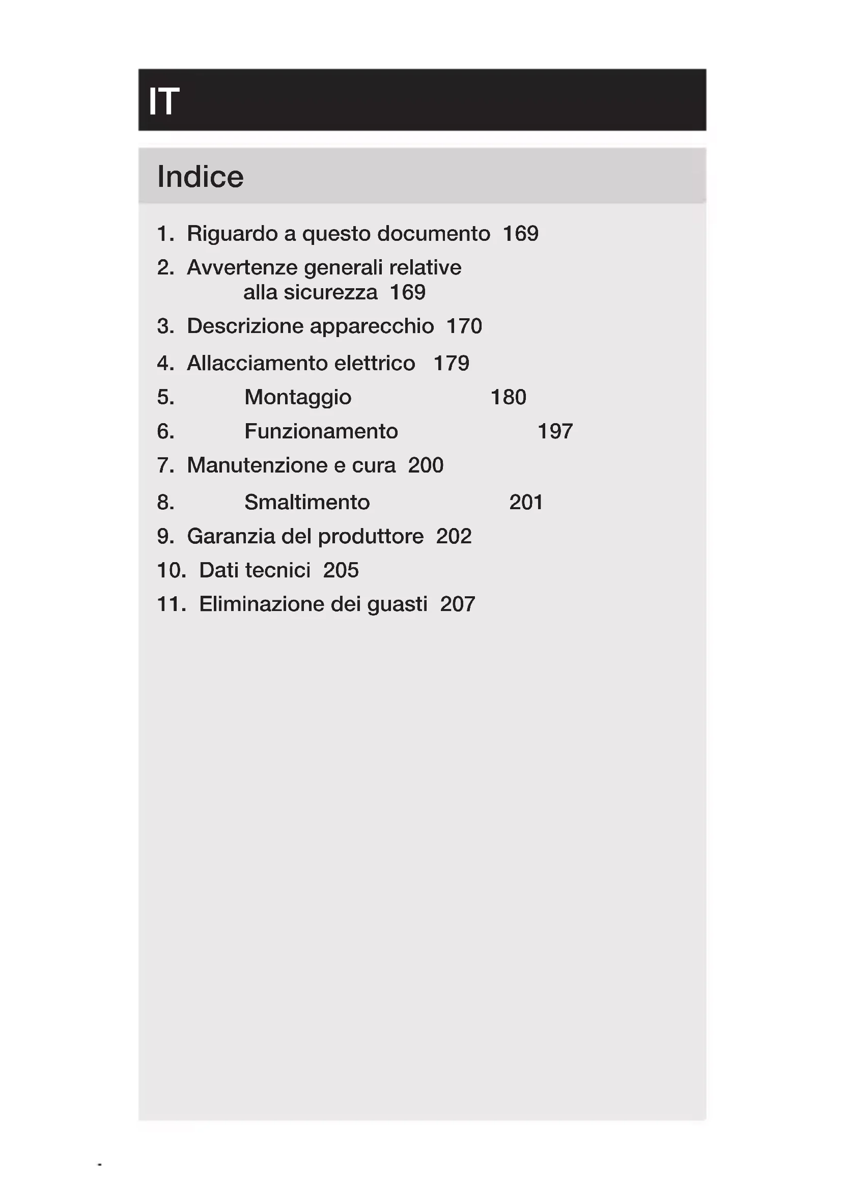 9. Garanzia del produttore 202