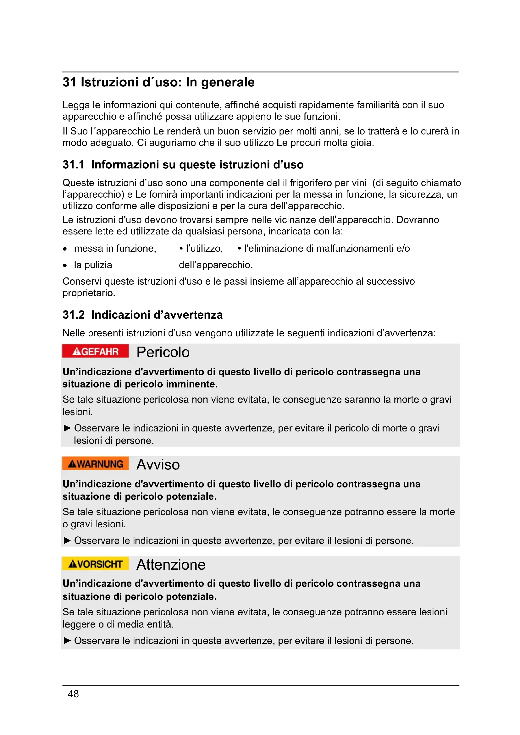 31.1 Informazioni su queste istruzioni d’uso
