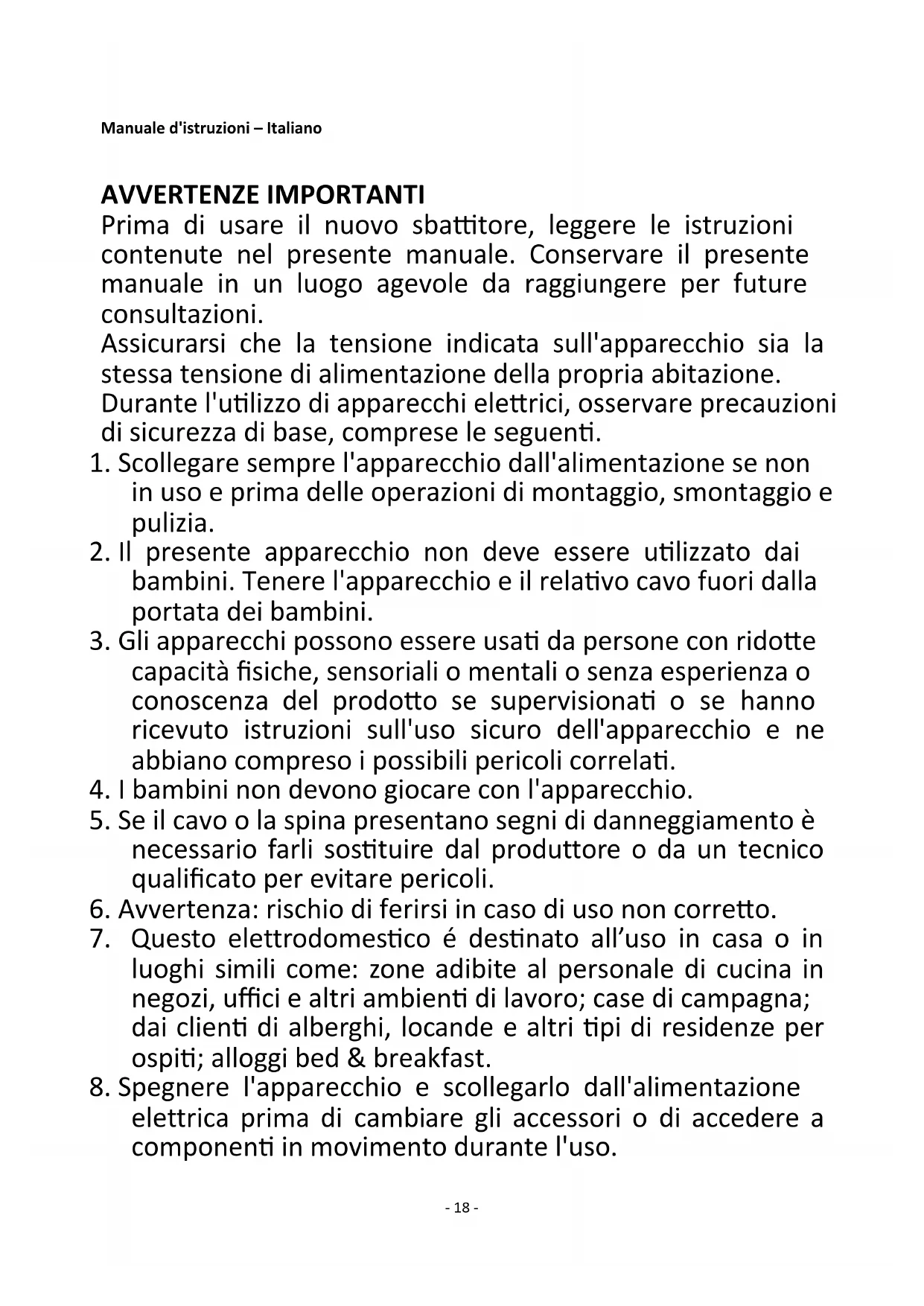 7. Questo elettrodomestico é destinato all’uso in casa o in