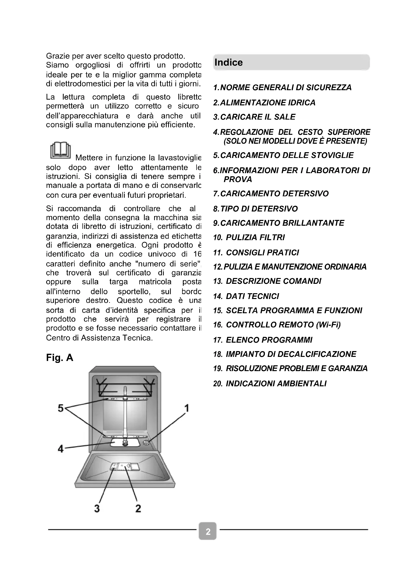 Mettere in funzione la lavastoviglie solo dopo aver letto attentamente le istruzioni. Si consiglia di tenere sempre il manuale a portata di mano e di conservarlo con cura per eventuali futuri proprietari.