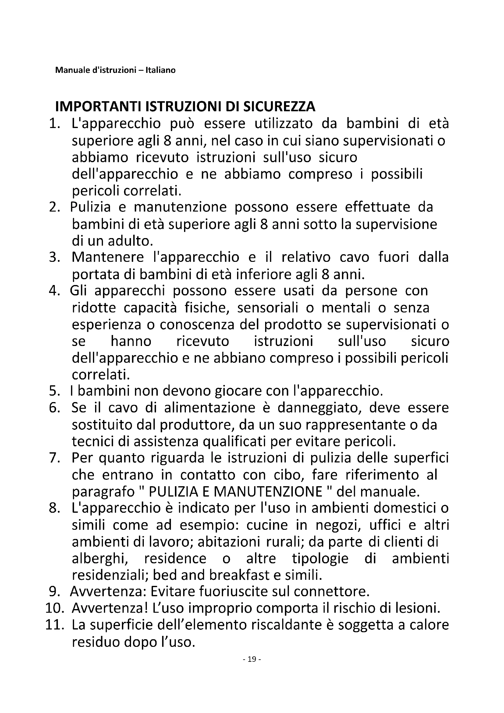 18. Nel caso il bollitore venga acceso inavvertitamente senza