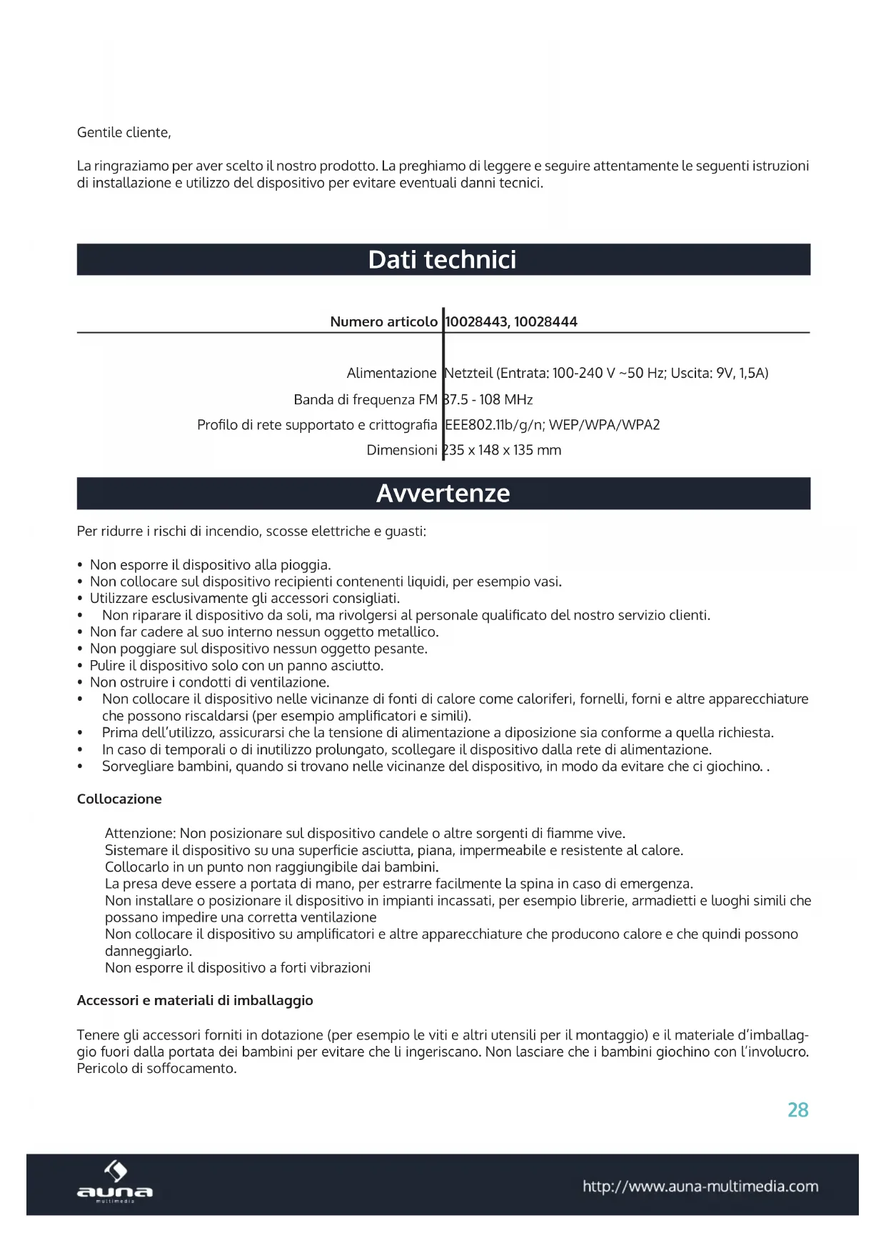 MANUALE UTENTE IR150 Auna