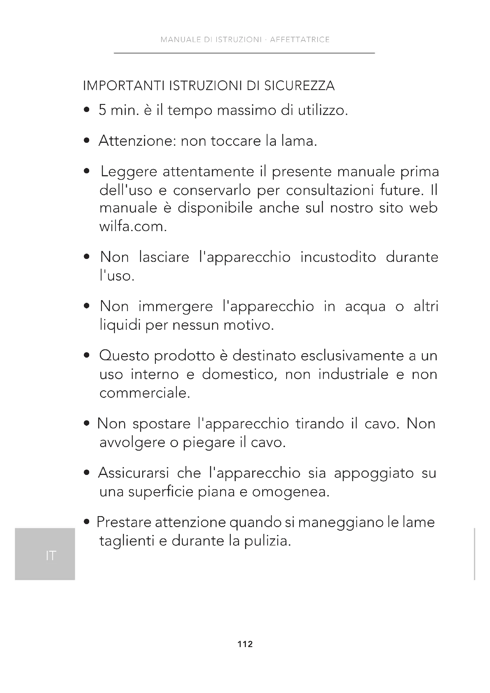 MANUALE UTENTE Easy Slice FS1W120 WILFA
