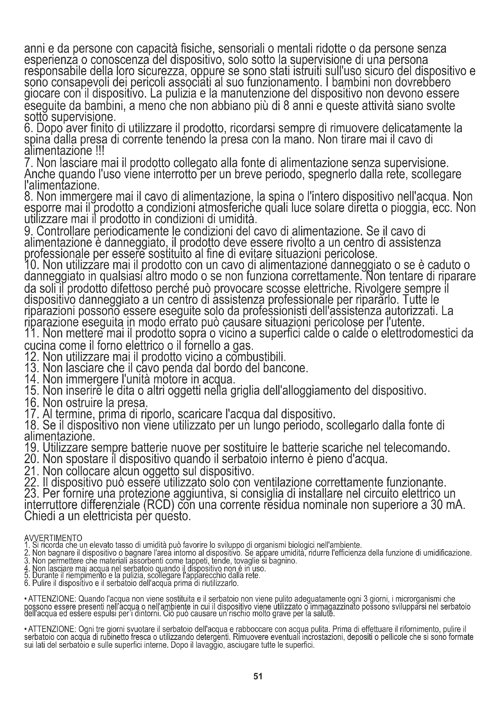 20. Non spostare il dispositivo quando il serbatoio interno è pieno d'acqua.