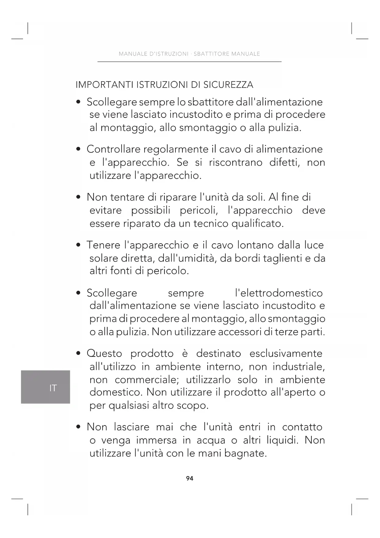 - Non utilizzare mai questo apparecchio per miscelare o mescolare qualsiasi cosa diversa dal cibo.