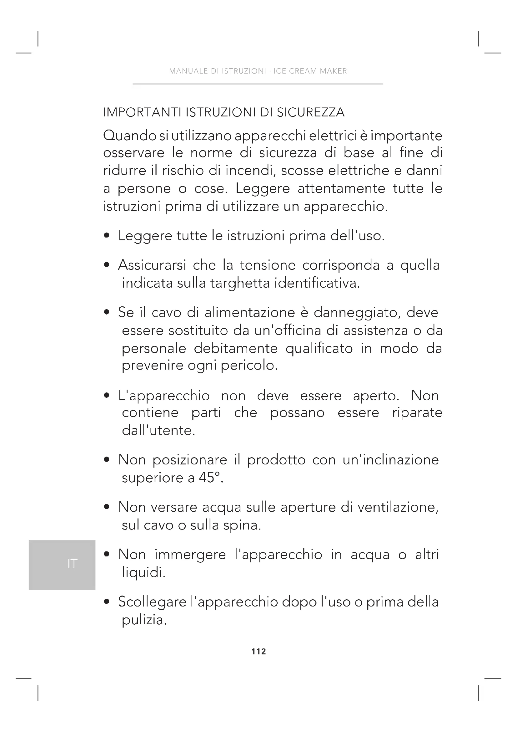 - Non inserire oggetti nella gelatiera attraverso le aperture di ventilazione. Tale azione può causare scosse elettriche o incendi.