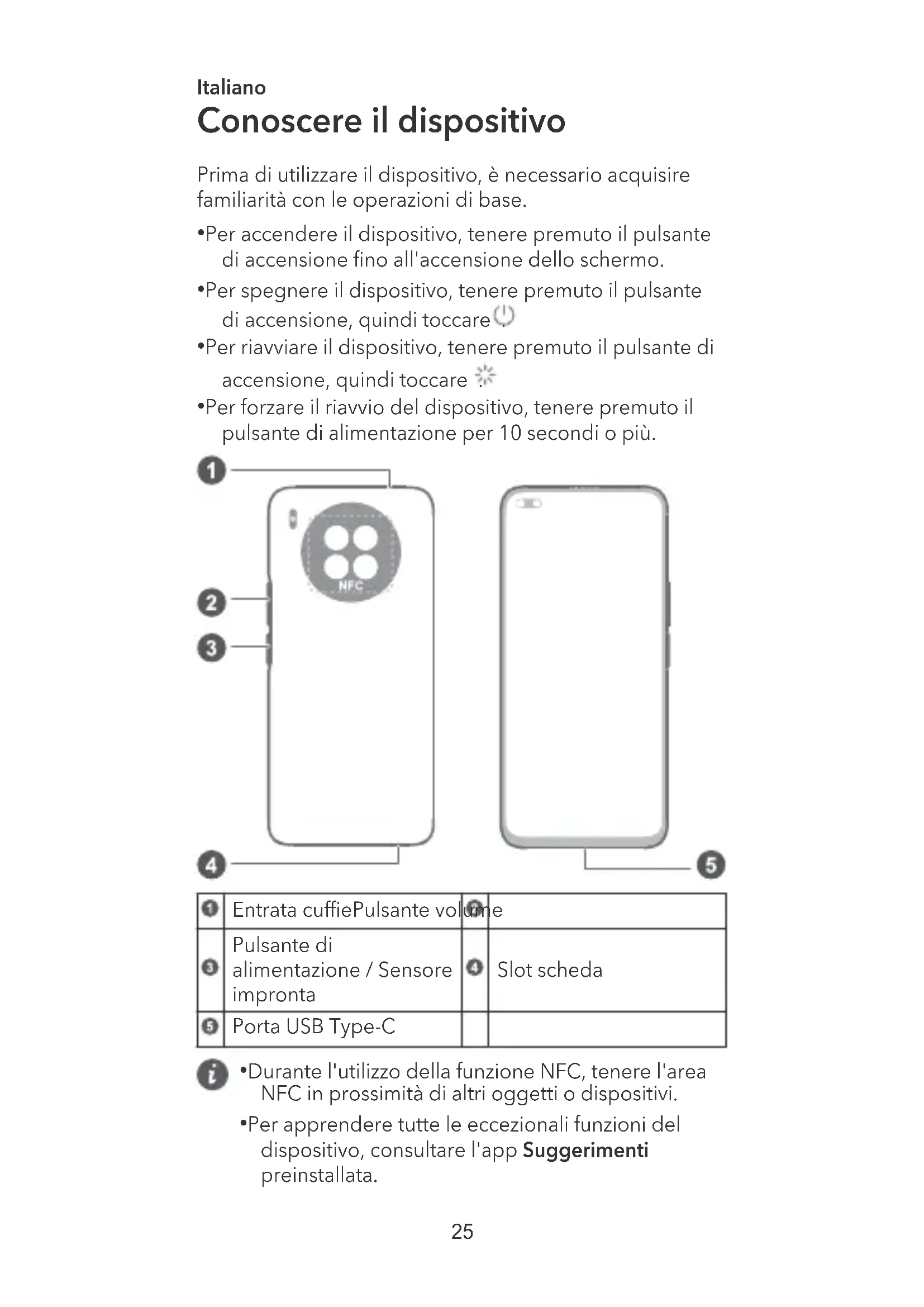 - Per apprendere tutte le eccezionali funzioni del dispositivo, consultare l'app Suggerimenti preinstallata. 25Introduzione
