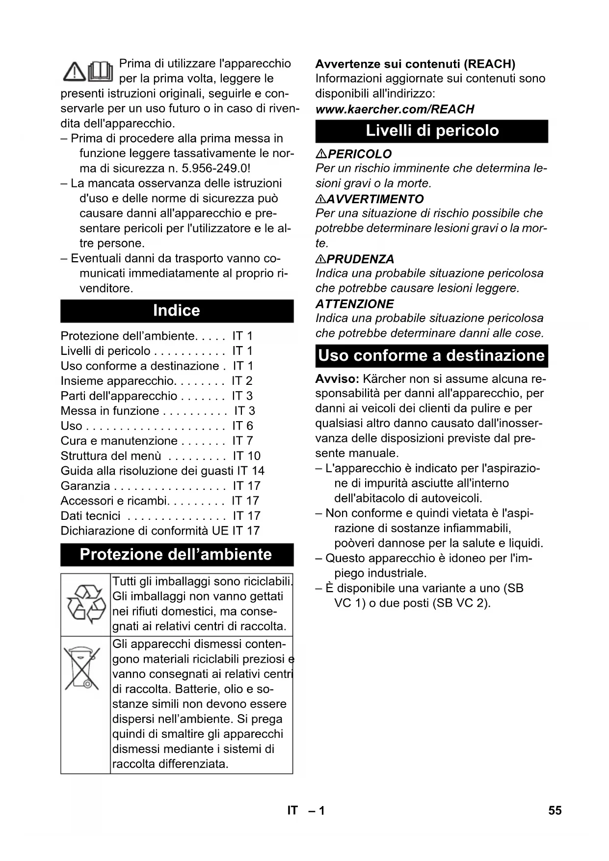 SB VC 2 - Aspirapolvere industriale Kärcher - Manuale utente e istruzioni gratuiti