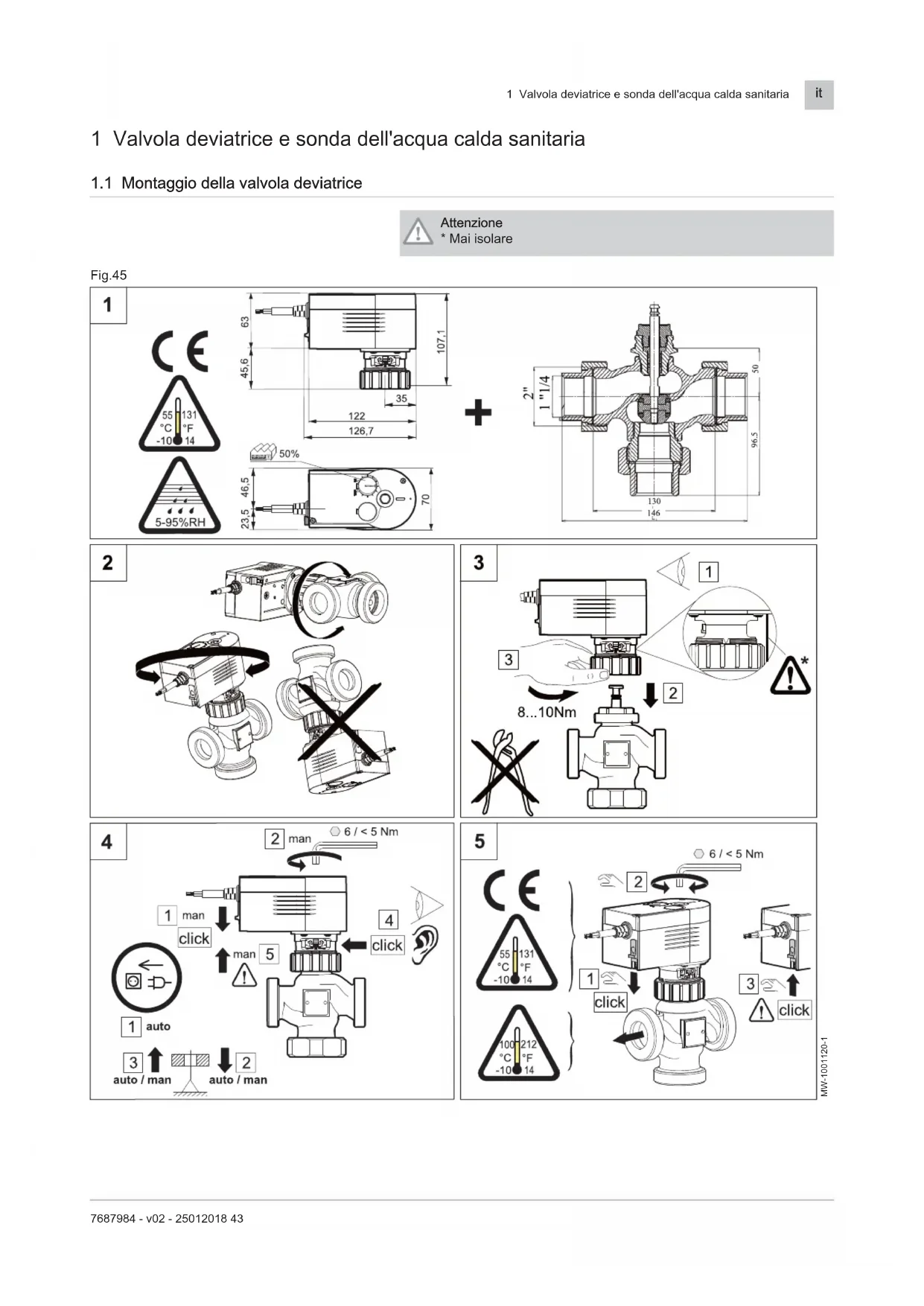 - Mai isolare Fig.45 MW-1001120-1 1 Valvola deviatrice e sonda dell'acqua calda sanitaria