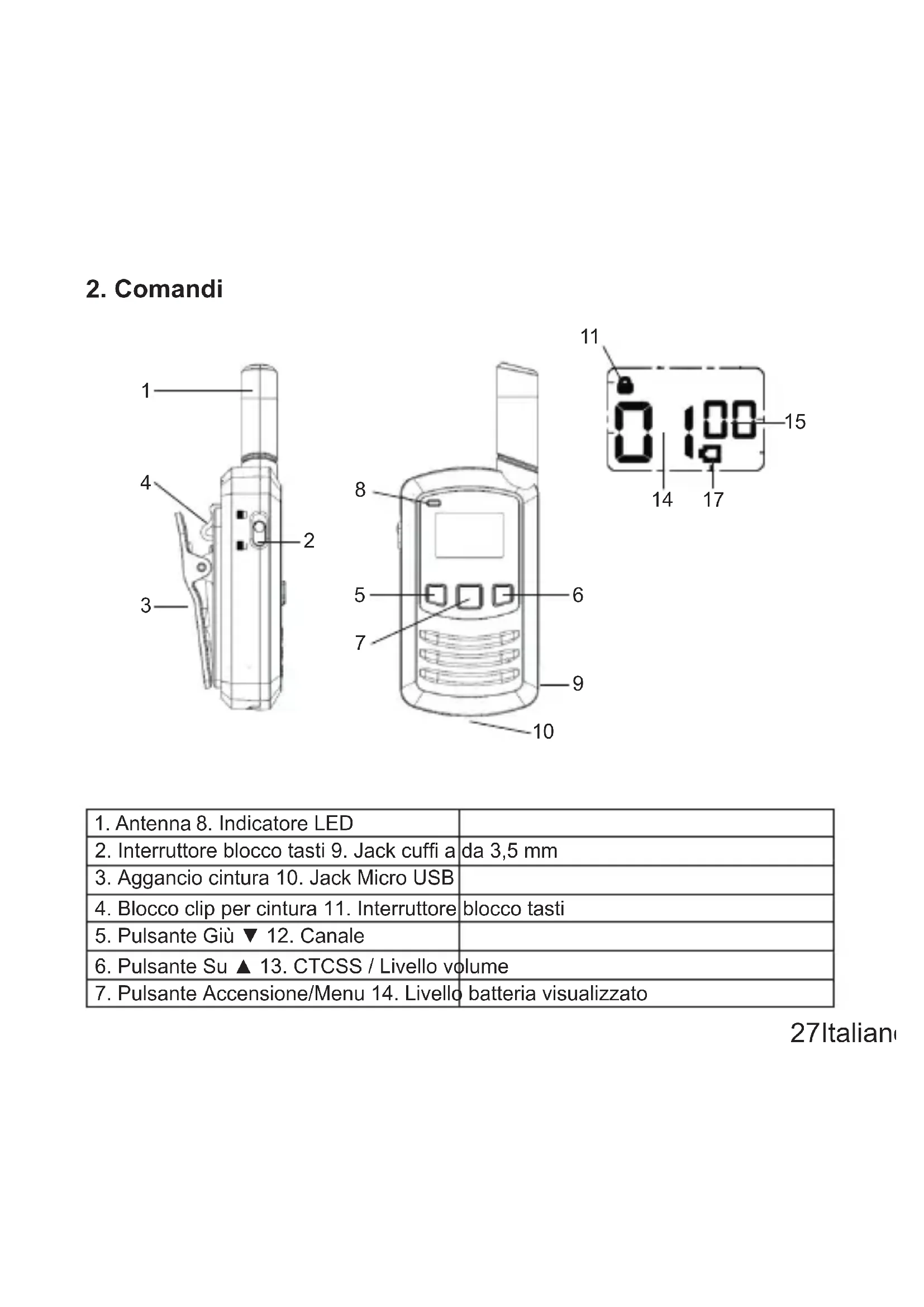 3. Aggancio cintura 10. Jack Micro USB