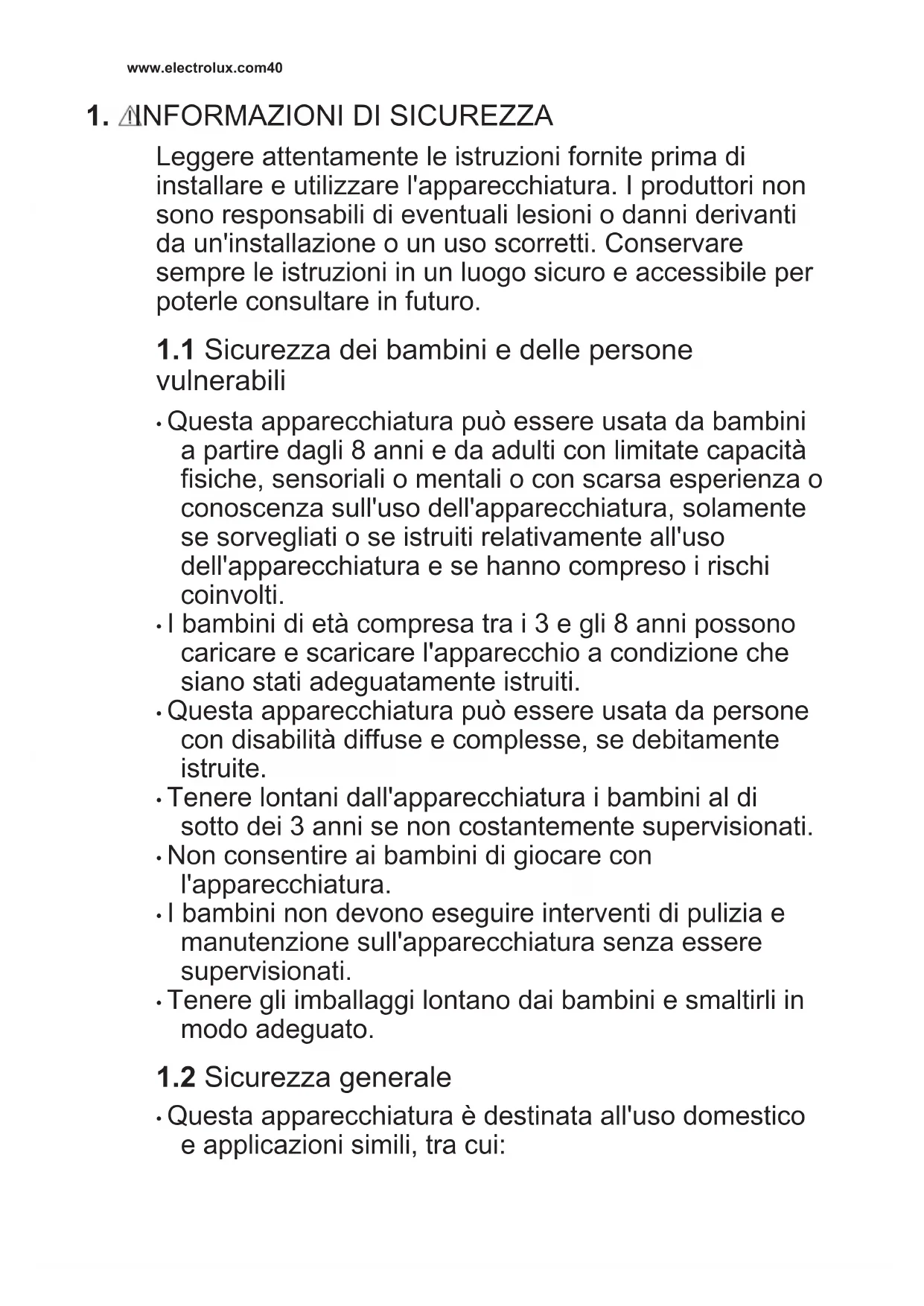 - Questa apparecchiatura è destinata all'uso domestico e applicazioni simili, tra cui: www.electrolux.com40– Case di campagna; cucine di negozi, uffici e altri ambienti di lavoro; – Clienti di hotel, motel, bed and breakfast e altri ambienti residenziali.