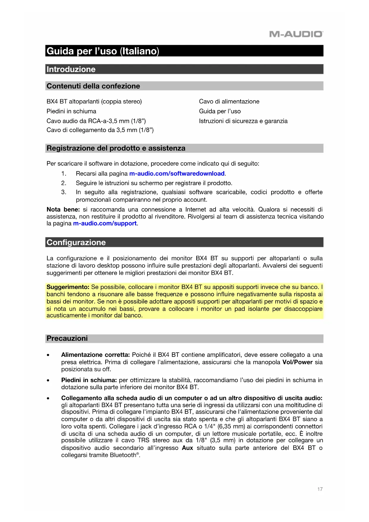 Scarica le istruzioni per il tuo Auricolare in formato PDF gratuitamente! Trova il tuo manuale BX4 BT - M-AUDIO e riprendi in mano il tuo dispositivo elettronico. In questa pagina sono pubblicati tutti i documenti necessari per l'utilizzo del tuo dispositivo. BX4 BT del marchio M-AUDIO.