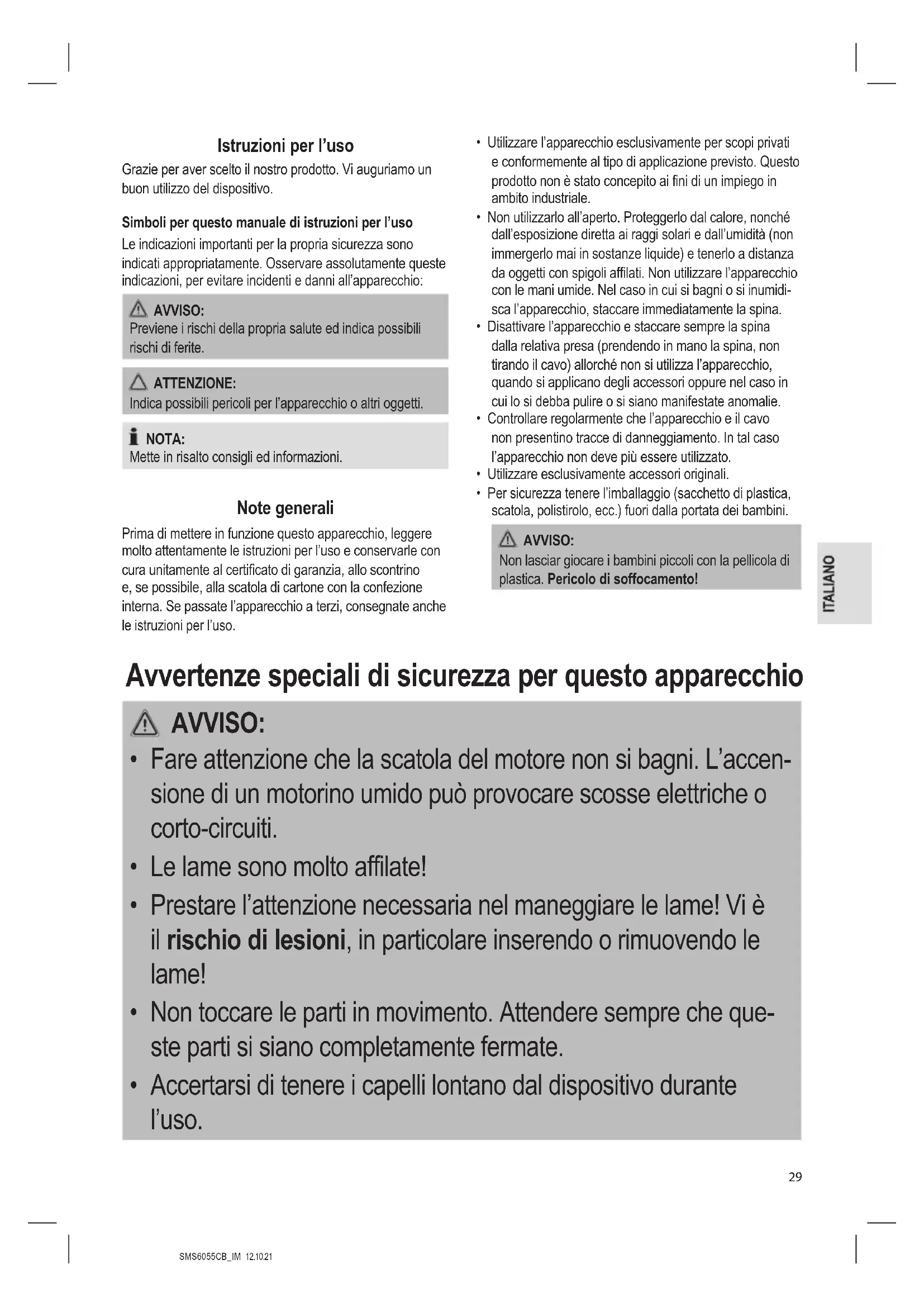- Accertarsi di tenere i capelli lontano dal dispositivo durante l’uso.SMS6055CB_IM 12.10.21