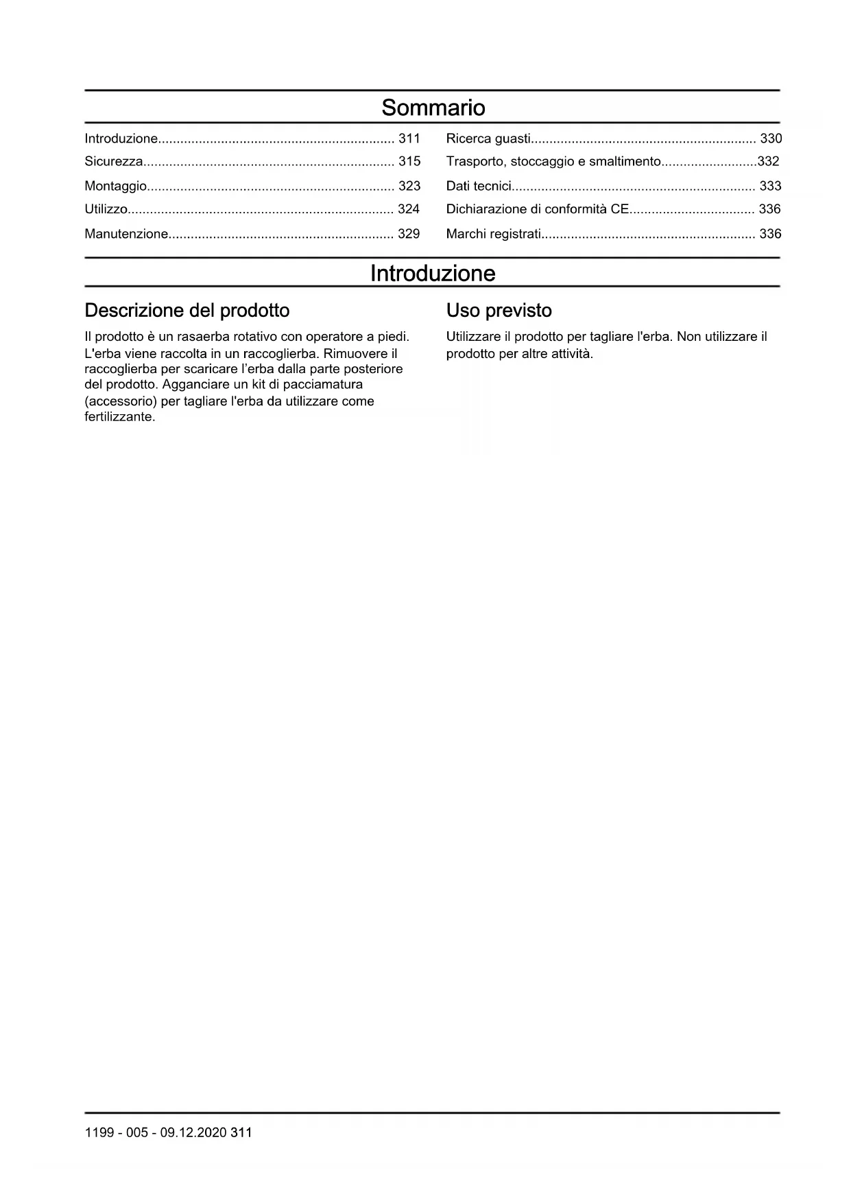 Posizionare il prodotto su una superficie piana e stabile e 1199 - 005 - 09.12.2020 317avviarlo. Assicurarsi che la lama non venga a contatto con il terreno o con altri oggetti.