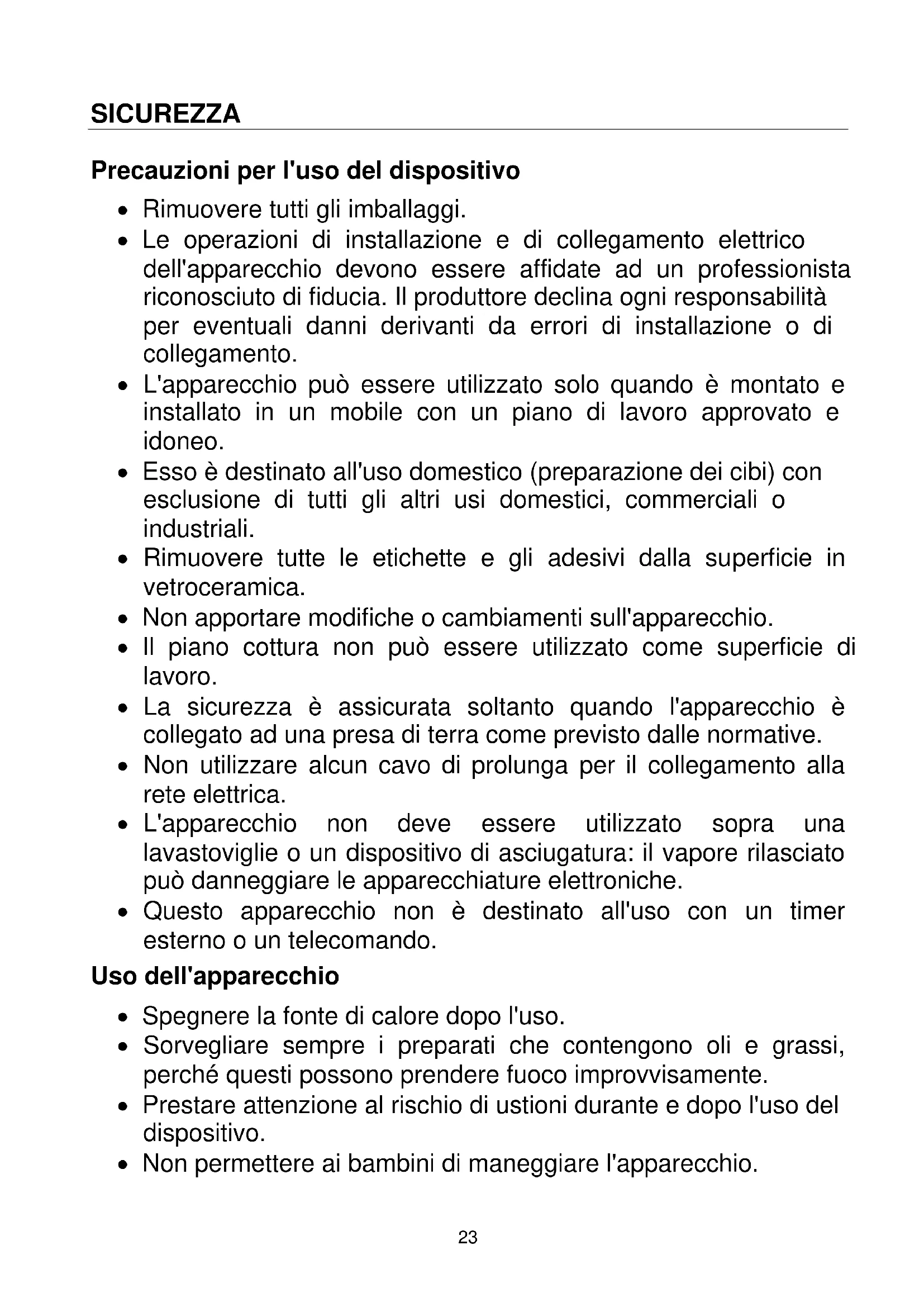 - AVVERTENZA: Se la superficie di cottura di vetro è rotta, spegnere il dispositivo per evitare il rischio di scosse elettriche.26 Altre misure precauzionali