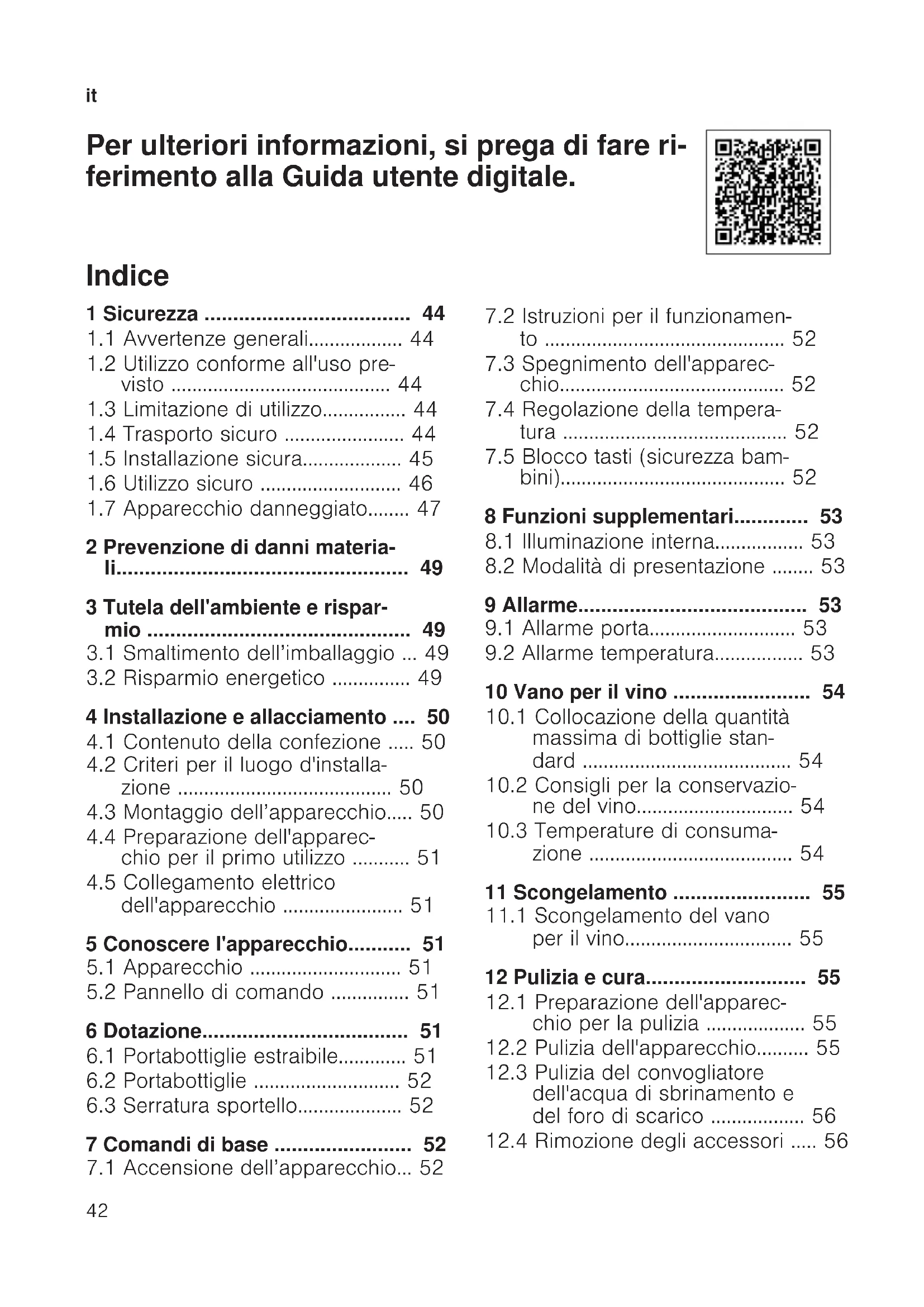 Per ulteriori informazioni, si prega di fare ri- ferimento alla Guida utente digitale. Indice 1 Sicurezza ....................................44