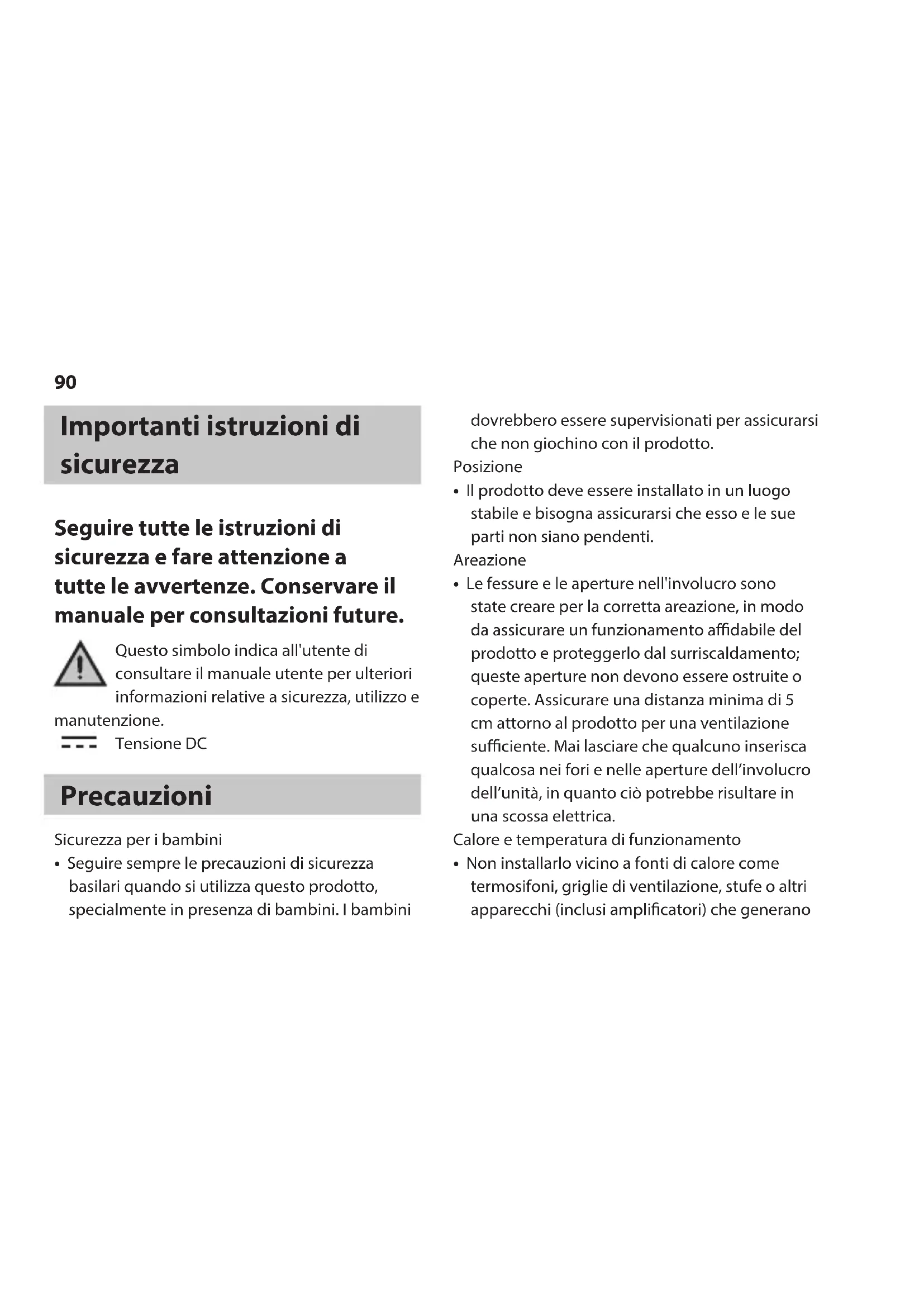 Questo simbolo indica all'utente di consultare il manuale utente per ulteriori informazioni relative a sicurezza, utilizzo e manutenzione. Tensione DC Precauzioni Sicurezza per i bambini