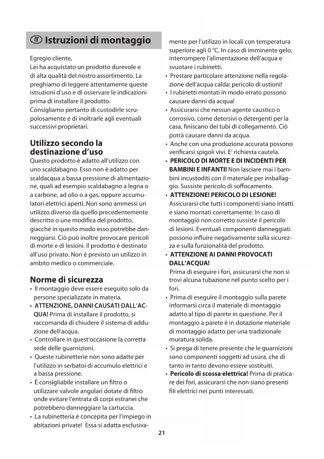 - La rubinetteria è concepita per l'impiego in abitazioni private! Essa si adatta esclusiva