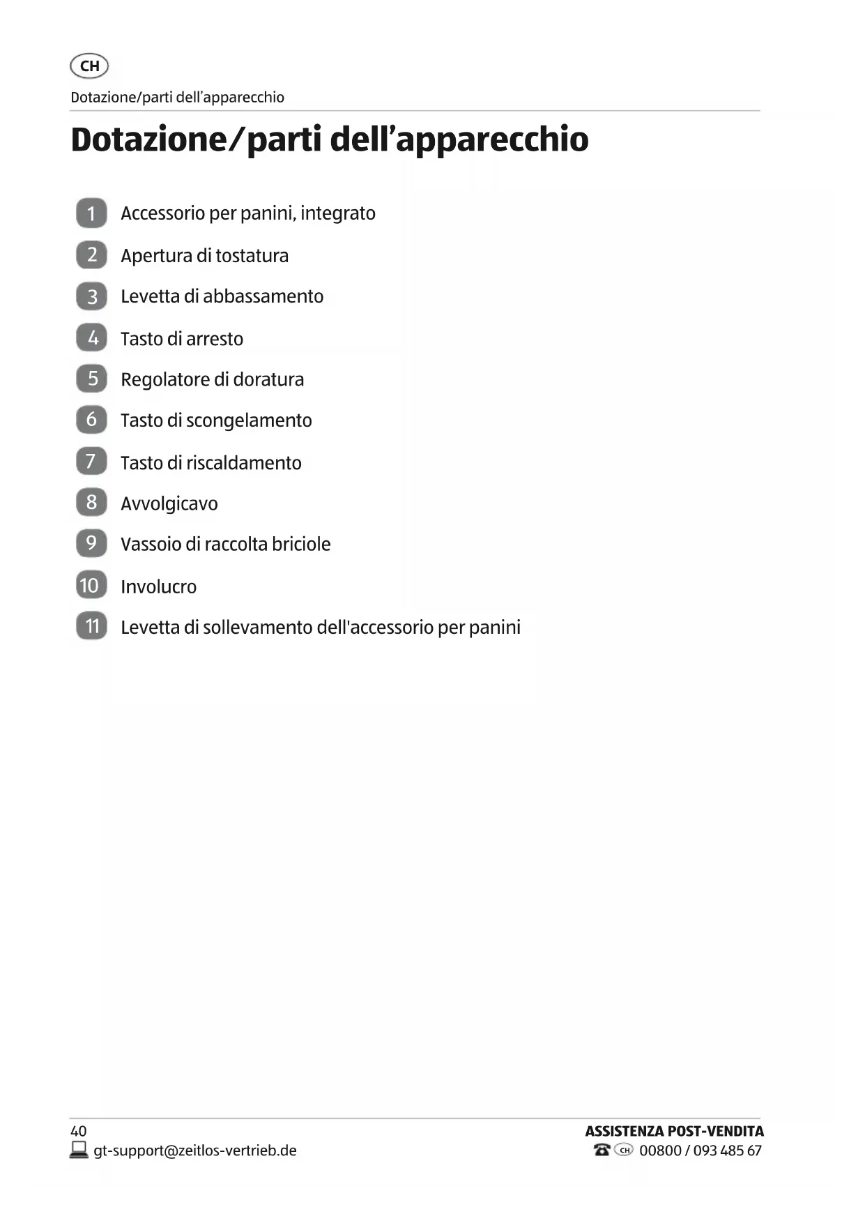 Dotazione/parti dell'apparecchio 40