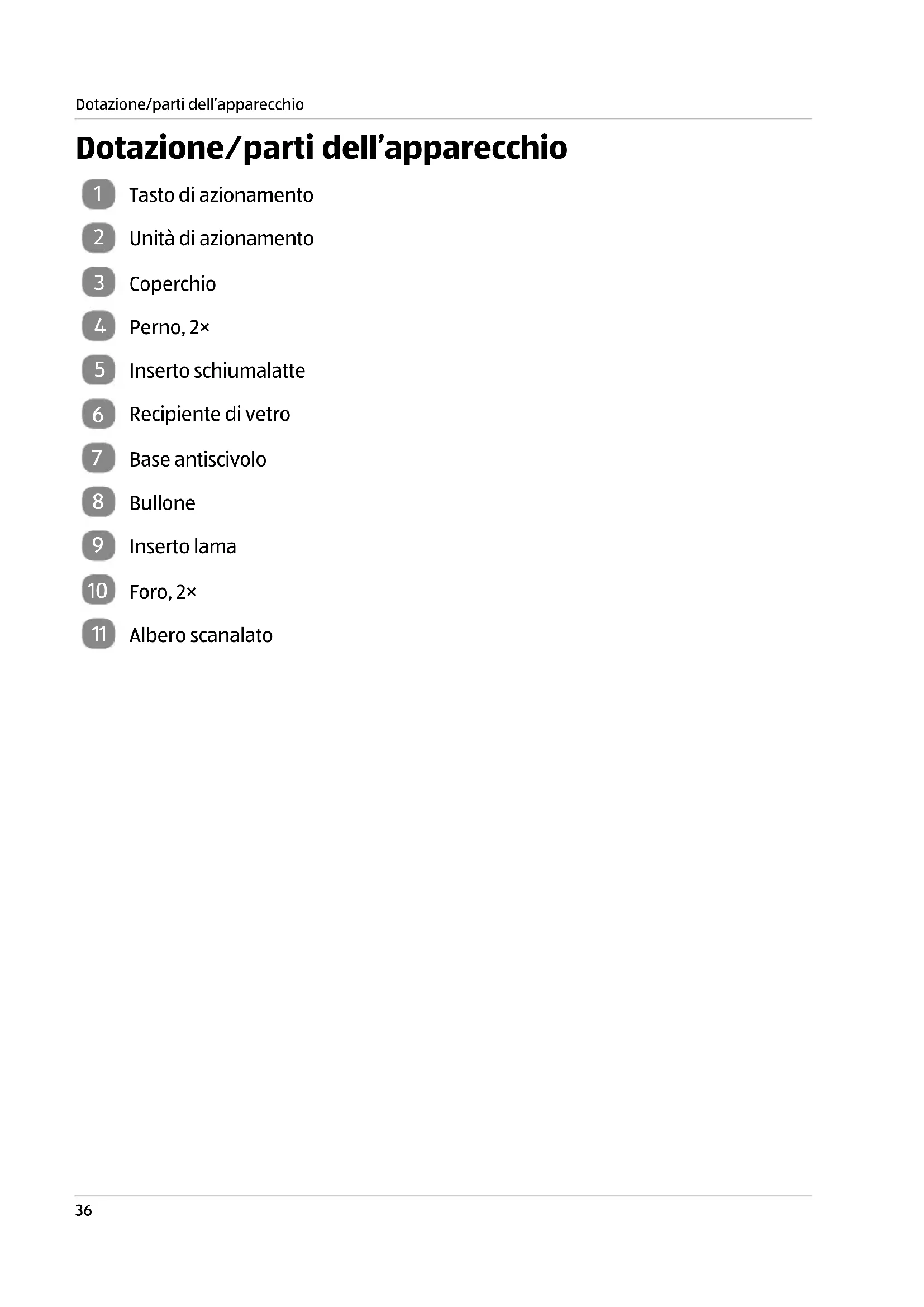 AVVERTIMENTO! Pericolo di ferimenti! Il mini tritatutto è dotato di lame affilate. Un utilizzo non conforme alla destinazione d’uso del mini tritatutto o delle singole parti potrebbe provocare lesioni da taglio gravi. − Non toccare le parti mobili dell’apparecchio né tentare di fermare le parti dell’apparecchio a mano o con altri oggetti. − Non toccare le lame con le mani nude. − Non utilizzare il mini tritatutto se le lame sono danneggiate. − Utilizzare esclusivamente accessori originali forniti alla consegna. − Non tritare ingredienti duri o noccioli e rimuovere gambi o steli prima di tritare gli ingredienti. Prima di tritare la carne, rimuovere ossa e tendini. − Non azionare il mini tritatutto senza ingredienti, il motore po- trebbe surriscaldarsi. − Utilizzare il mini tritatutto con inserto lama al massimo per 15 secondi e con l’inserto schiumalatte al massimo per 2minuti di seguito. Lasciar raffreddare a temperatura ambiente il mini tritatutto. − Segnalare questi pericoli anche ad altri utilizzatori. AVVISO! Pericolo di danneggiamento! L’uso improprio può danneggiare il mini tritatutto. − Non utilizzare più il mini tritatutto se i suoi componenti sono screpolati o spaccati, o se si sono deformati. Sostituire i compo- nenti danneggiati soltanto con gli appropriati ricambi originali.Controllare il mini tritatutto e la dotazione