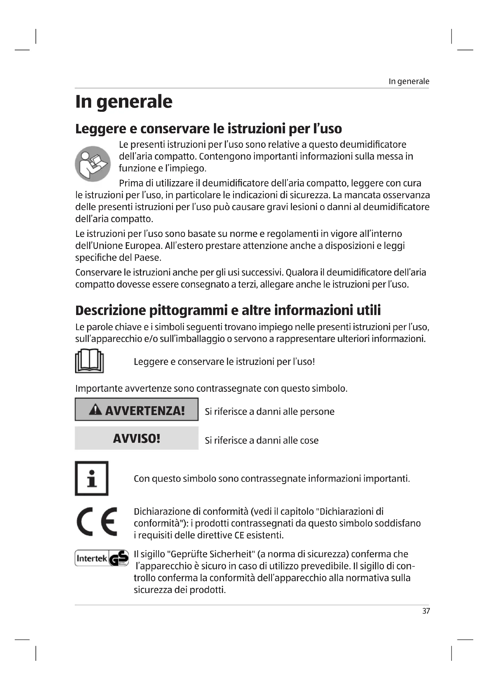 - Leggere e conservare le istruzioni per l’uso p. 37