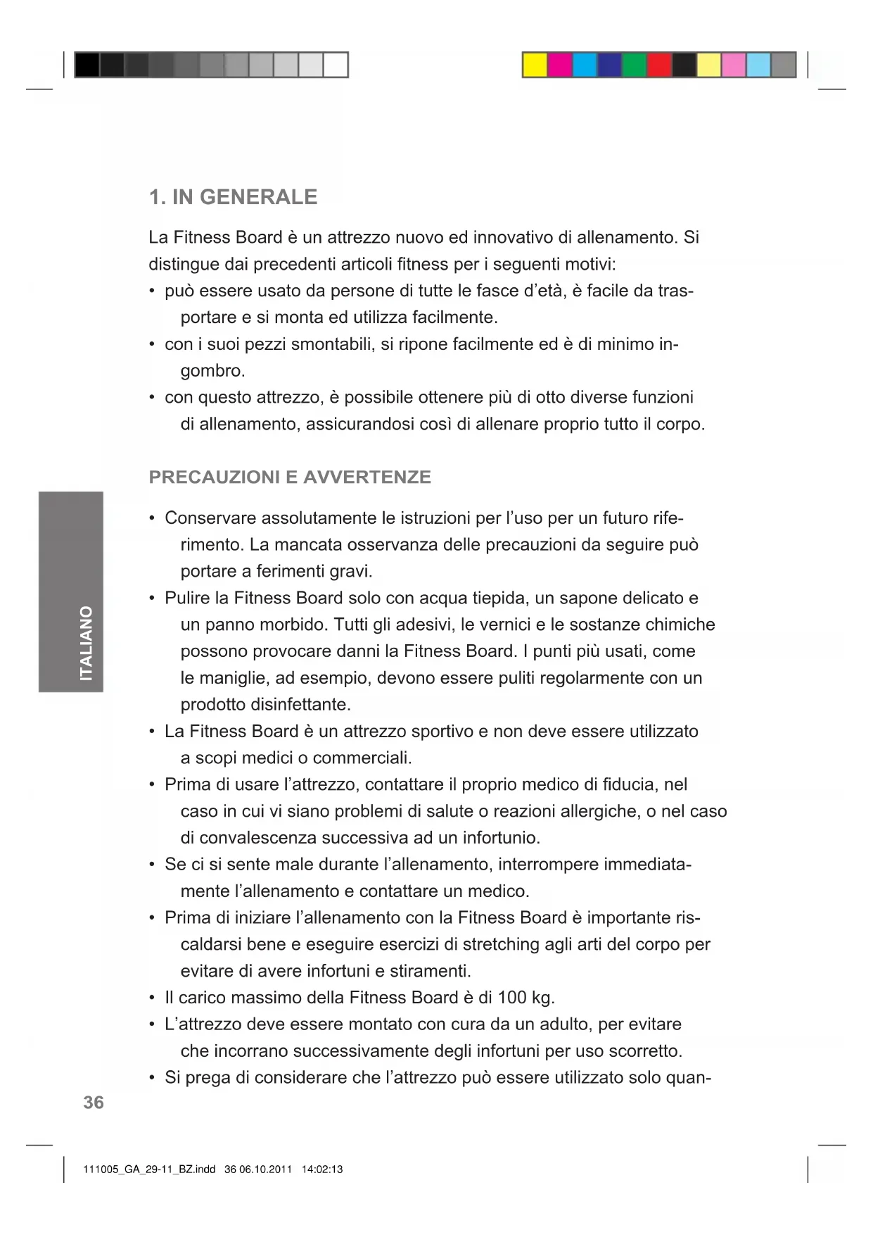 - Non salire sul disco girevole, mentre l‘attrezzo viene usato come Balance-Board. 111005_GA_29-11_BZ.indd 40 06.10.2011 14:02:1341 ITALIANO