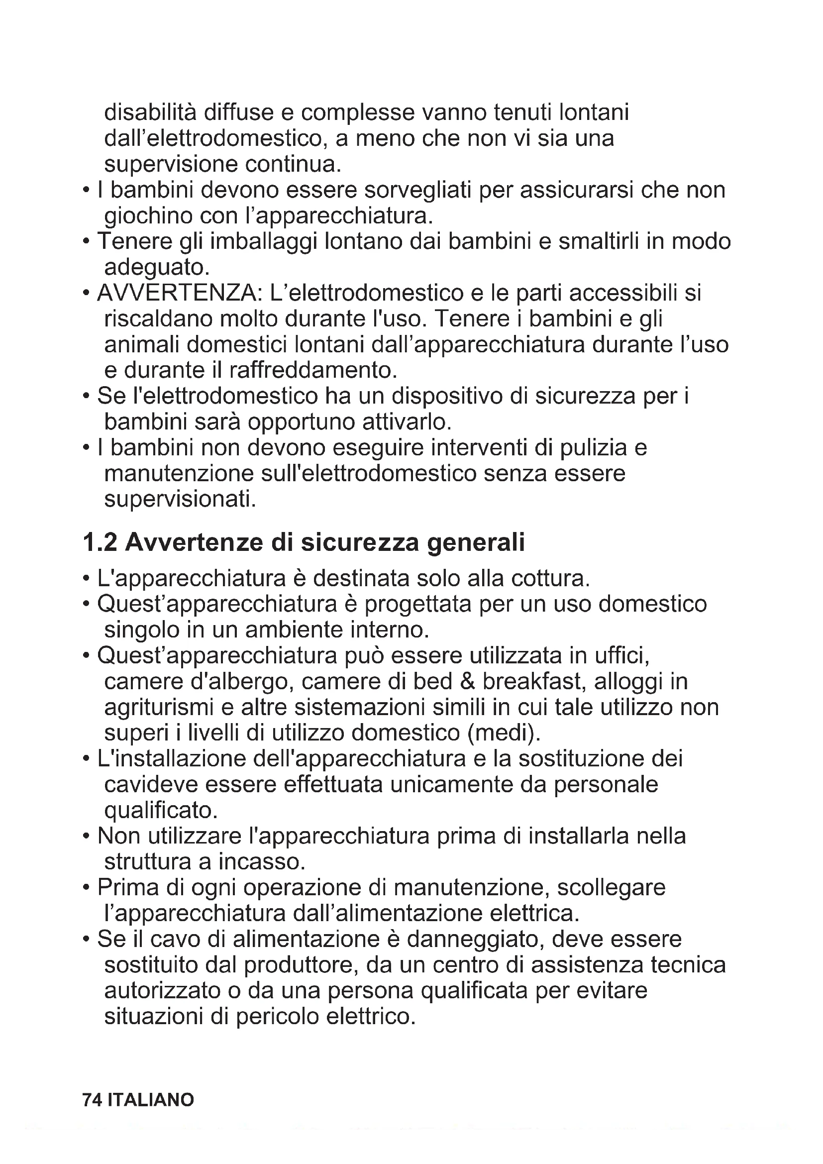 1.2 Avvertenze di sicurezza generali